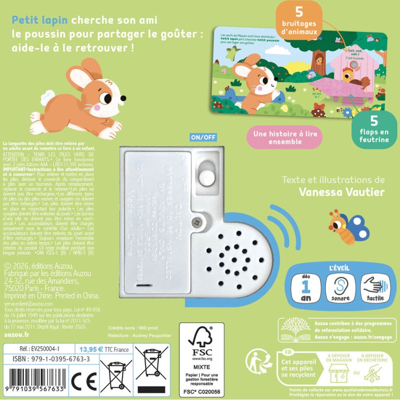 Dans ce nouveau titre sur Pâques, aide Petit lapin à retrouver son ami le poussin pour partager le goûter !