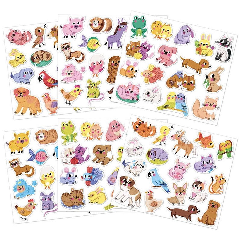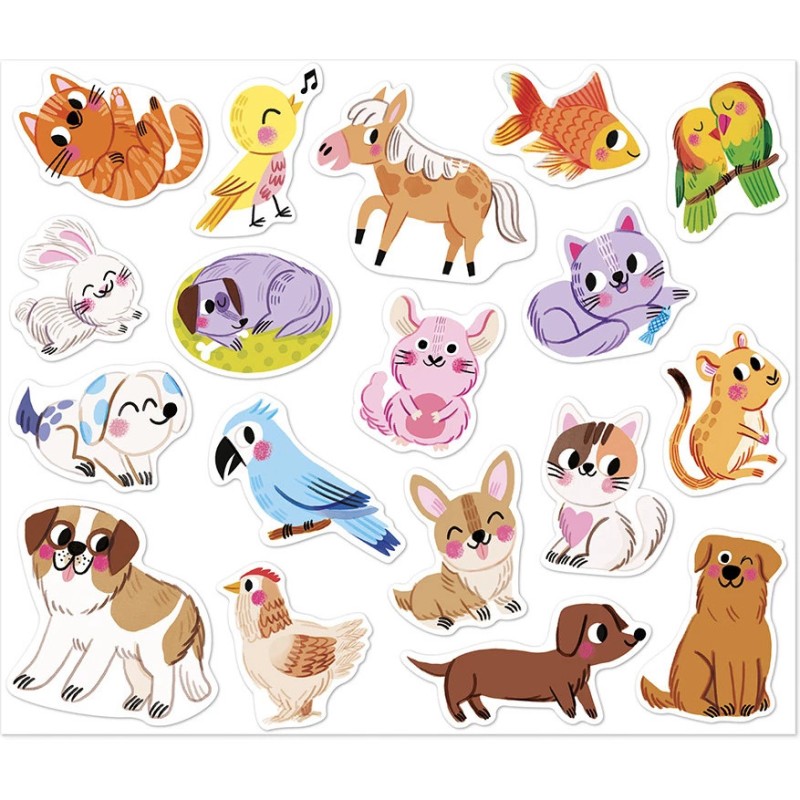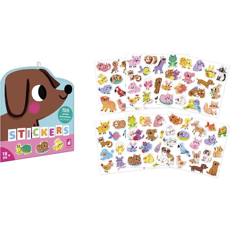 Des gommettes en version grande taille pour les petits ! Cette pochette de 100 stickers sur le thème des animaux de compagnie est conçue pour les bébés et enfants dès 18 mois. Avec autant de grosses gommettes, les idées créatives vont fleurir… encore et encore ! Pour satisfaire les amateurs d’autocollants, ouvrez ce joli pack en forme de chien et découvrez 6 planches de compagnons trop mignons : chats câlins, chiens joueurs, poissons colorés... Tous s’en donnent à cœur joie dans cette pochette de gommettes ! La taille des stickers a été pensée pour convenir aux petites mains : chaque planche mesure 20x17 cm et se compose de 16 stickers faciles à manipuler. Cette pochette d’autocollants est idéale pour occuper les longs trajets ou encore enrichir les premiers dessins. En jouant avec les stickers, bébé développe sa motricité fine tout en laissant libre cours à son imagination et sa créativité ! Les couleurs douces et les illustrations pleines de tendresse attiseront sa curiosité, pour le divertir, une gommette après l’autre !
