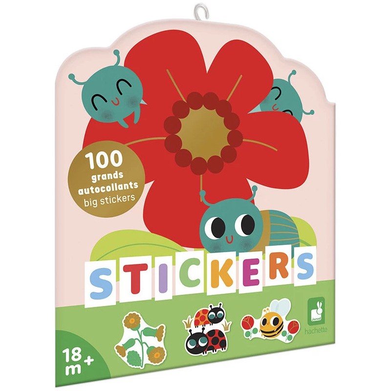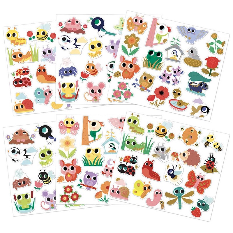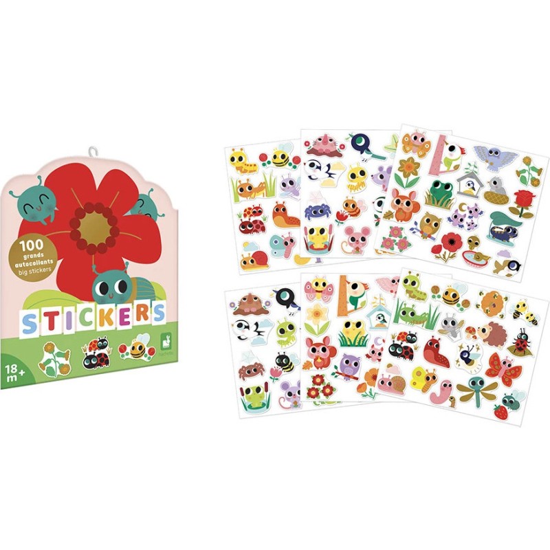 Découvrez tout un monde miniature avec ces grandes gommettes ! Cette pochette de 100 stickers sur le thème des petites bêtes est idéale pour les bébés et enfants dès 18 mois. Avec autant de grosses gommettes, l’amusement est garanti… Et pour longtemps ! Pour satisfaire les amateurs d’autocollants, ouvrez ce joli pack en forme de fleur et découvrez 6 planches remplies de créatures adorables : coccinelles, papillons, abeilles, chenilles, libellules et bien d’autres insectes rigolos ! Tous s’en donnent à cœur joie dans cette pochette de gommettes ! La taille des stickers a été spécialement pensée pour s’adapter aux petites mains : chaque planche mesure 20x17 cm et contient 16 stickers. On retrouve même des effets de dorure sur 2 planches. Cette pochette d’autocollants est parfaite pour occuper les longs trajets ou compléter les premiers dessins. En manipulant les stickers, bébé développe sa motricité fine et même sa créativité ! Les couleurs tendres et les designs adorables attiseront sa curiosité, pour le divertir, une gommette après l’autre !