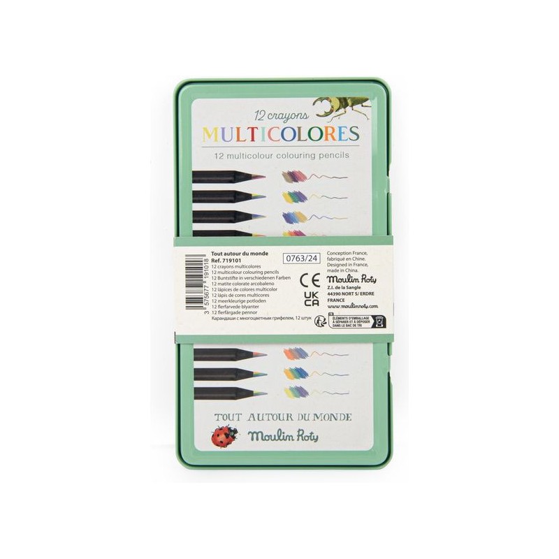 12 crayons de couleur multicolores Tout Autour du Mon - Moulin Roty