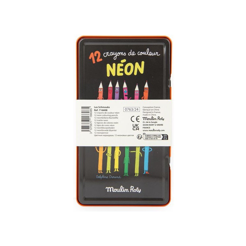 12 crayons de couleur Néon Les Schmouks - Papeterie - Moulin Roty