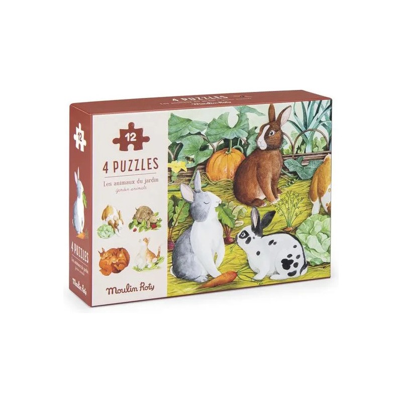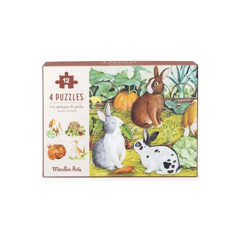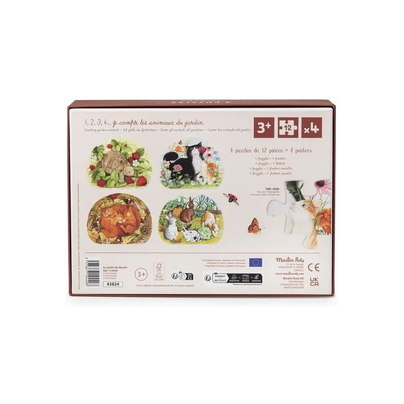 A la découverte des animaux du jardin ! Coffret 1er âge contenant 4 mini-puzzles de 12 pièces, mettant en scène des animaux domestiques et sauvages que l'enfant pourra découvrir dans son jardin. Chaque puzzle est accompagné d'un poster modèle.