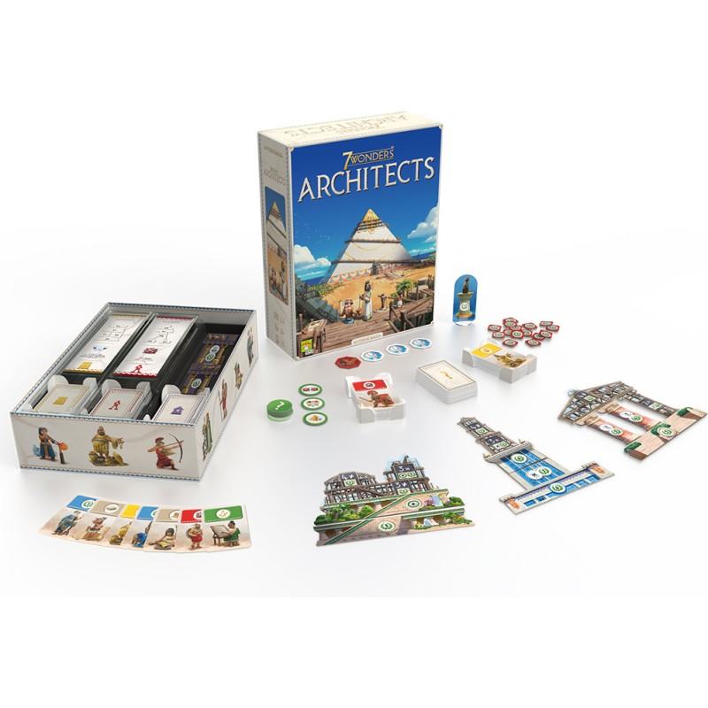 Votre postérité se joue maintenant ! 7 Wonders Architects est un nouveau jeu indépendant dans l’univers de 7 Wonders ! Votre objectif est aussi simple que grandiose : bâtir une Merveille si importante, si imposante, qu’elle marquera l’histoire de l’humanité. 7 Wonders Architects a été conçu pour offrir une expérience de jeu la plus fluide et immersive possible. Sous vos yeux, les Merveilles vont s’élever et entrer dans l’Histoire ! Un matériel innovant a été pensé dans ce sens et devrait attirer un très large public :