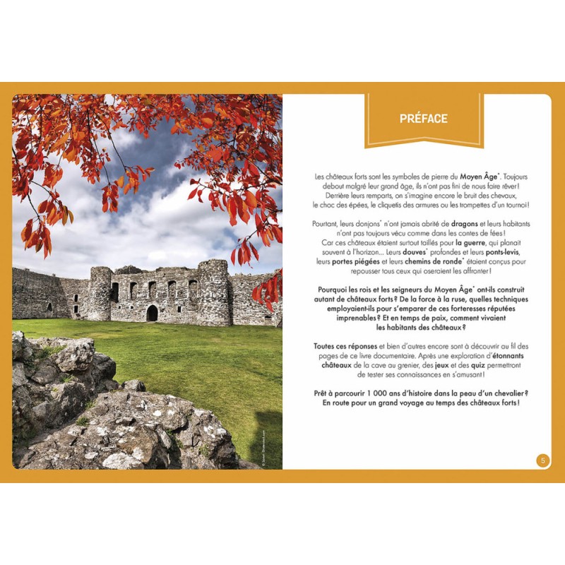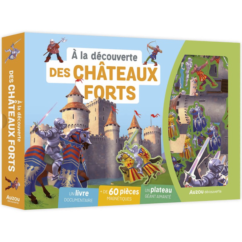 La boîte comprend un livre documentaire de 96 pages pour tout savoir sur les châteaux forts, ainsi que + de 60 aimants à replacer sur un grand plateau aimanté.