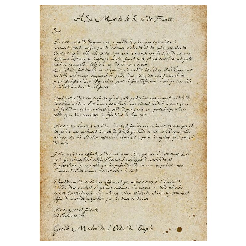 L’expérience de jeu repose sur une immersion progressive et captivante dans une histoire riche en péripéties et en rebondissements, conçue pour intriguer, surprendre et captiver les joueurs du début à la fin. L’histoire se déroule en trois chapitres distincts, chacun révélant de nouvelles facettes du mystère du Graal. Les énigmes et les indices sont intégrés de manière organique à l’intrigue, vous plongeant dans une progression logique et fluide qui maintient un suspense constant. Les joueurs sont accompagné les joueurs tout au long de l’aventure par une interface digitale avec des contenus interactifs (vidéos, module 3D de jeux, enregistrements...). En combinant des éléments physiques (cartes, documents) et numériques (indices visuels et sonores, interactions virtuelles), le jeu vous fait sentir comme un véritable acteur de l’Histoire.