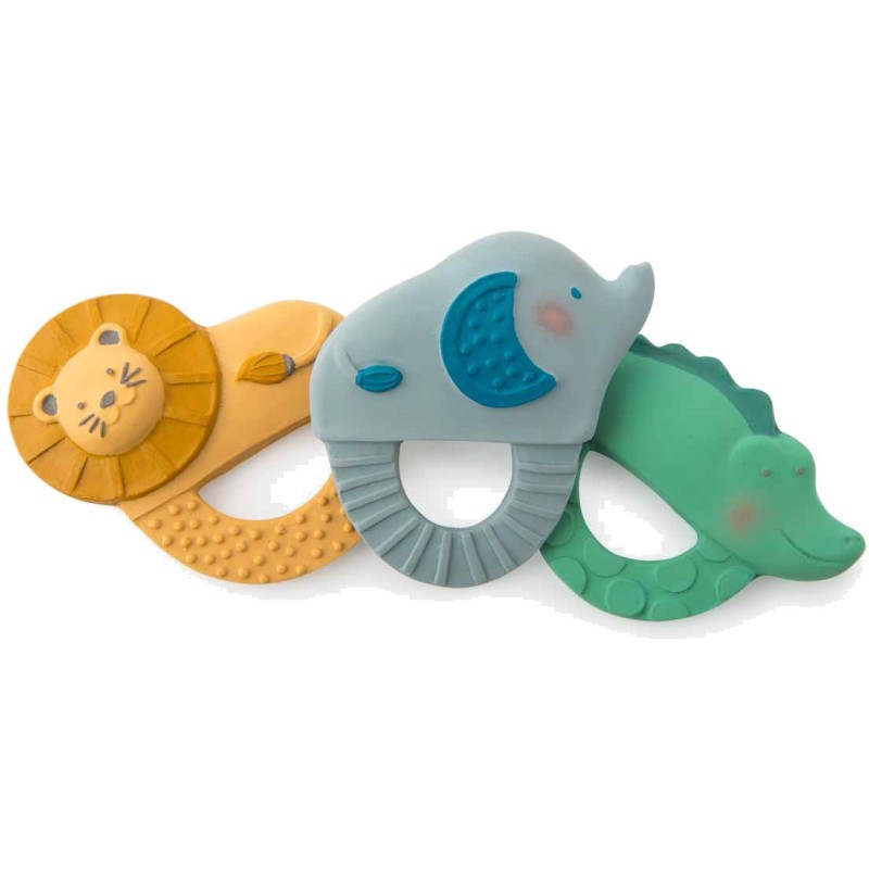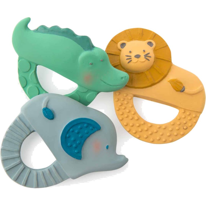 Anneau en caoutchouc 100% naturel, issu de la sève d'Hévéa, avec Bergamote l'éléphant de la savane ! Pour soulager les dents de bébé ou jouer dans le bain, il n'a ni trou ni sifflet pour éviter l'accumulation de saletés à l'intérieur.