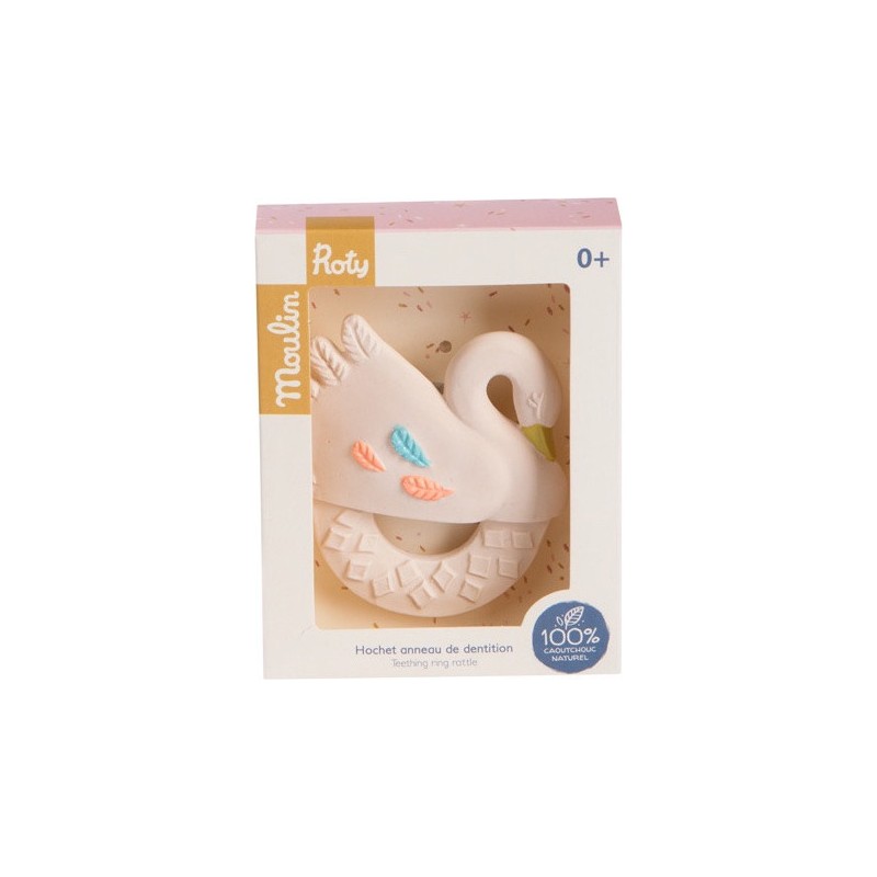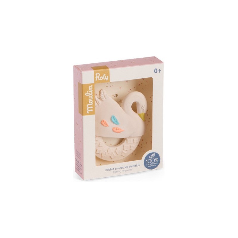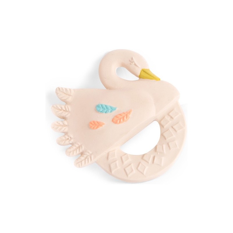 Anneau en caoutchouc 100% naturel, issu de la sève d'Hévéa, en forme de petit cygne ! Pour soulager les dents de bébé ou jouer dans le bain, il n'a ni trou ni sifflet pour éviter l'accumulation de saletés à l'intérieur.