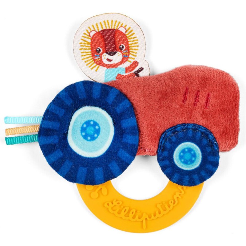 Un anneau de dentition rigolo à explorer ! Quand les dents commencent à pousser, Jack devient l’allié courageux de bébé : il transforme chaque moment inconfortable en une escapade amusante. À bord de son tracteur tout doux, ce lion téméraire emmène bébé pour une virée pleine de découvertes et de soulagement grâce à son anneau en silicone à mordiller ! Avec sa bouille adorable, sa jolie crinière et ses couleurs vives, Jack stimule la vue et la motricité fine des tout-petits. La touche Lilliputiens : des rubans colorés à attraper, une étiquette à son effigie pour les petites mains curieuses et un tracteur moelleux qui invite au câlin. Facile à saisir, ce jouet premier âge accompagne bébé dans ses explorations sensorielles. Pendant que bébé joue, il peut mordiller l’anneau souple à reliefs pour apaiser ses gencives sensibles. Ce jouet est une bonne idée pour un cadeau de naissance ! Dans son format 10 x 10 cm, il trouve sa place dans le coin jeu de bébé et lors de vos séances de motricité libre. Cet anneau de dentition est lavable à la main en surface uniquement. Soulager les gencives de bébé devient une vraie aventure avec Jack !
