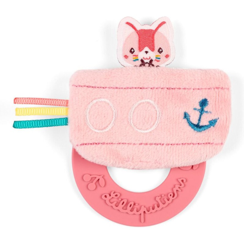 Facilement reconnaissable avec ses jolies moustaches et ses couleurs tendres, Jeanne stimule la vue et la motricité fine des tout-petits. La touche Lilliputiens : des rubans colorés à attraper, une étiquette à son effigie pour les petites mains curieuses et un bateau moelleux qui invite au câlin. Conçu pour être facilement saisi, ce jouet premier âge accompagne bébé dans ses premières explorations sensorielles.