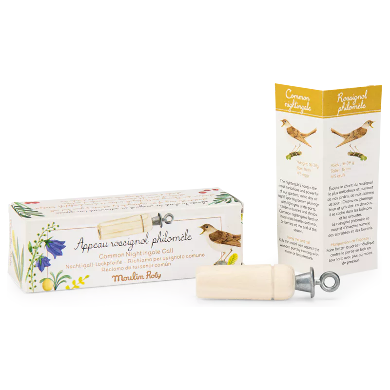 Imite le chant du rossignol Philomèle en soufflant dans l'appeau. Cet outil pédagogique d'éveil à la nature se glisse facilement dans une poche. Une jolie manière d'apprendre à découvrir la nature et de parler aux oiseaux. Élaboré artisanalement en France