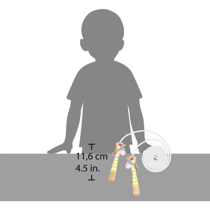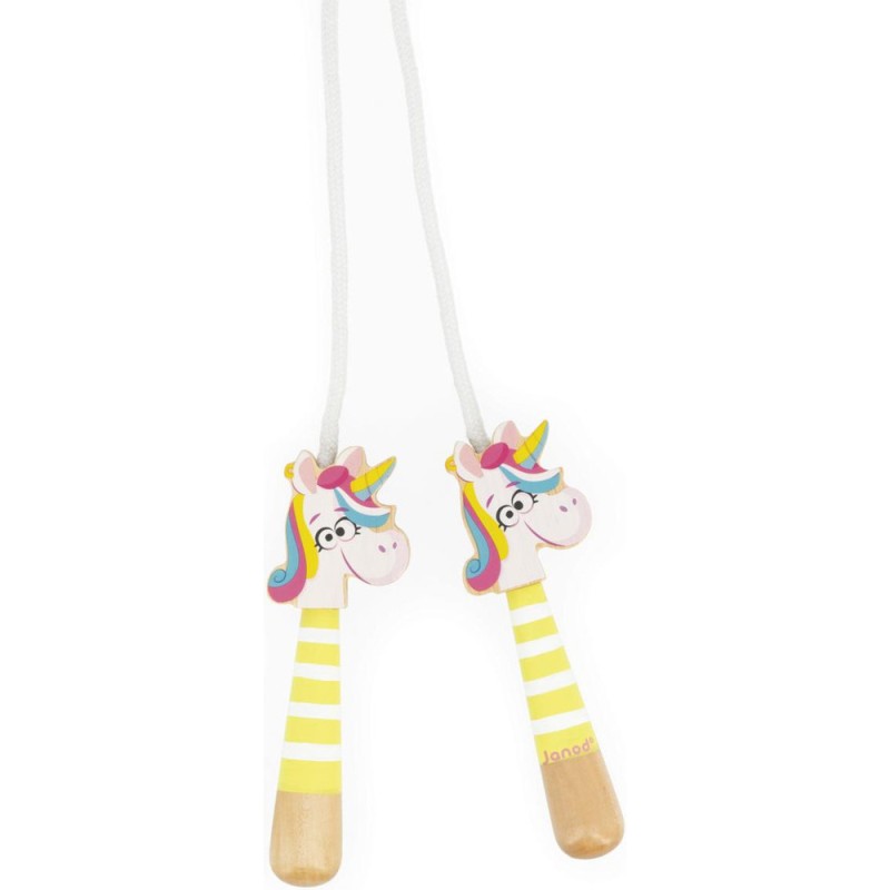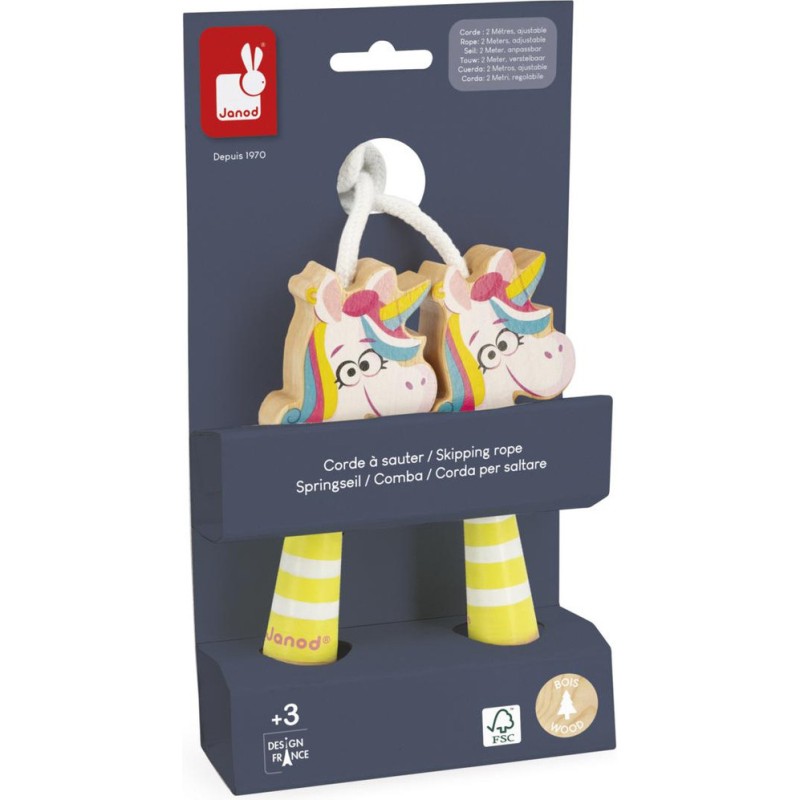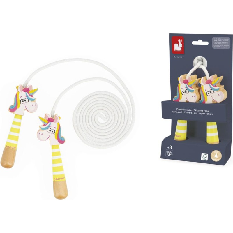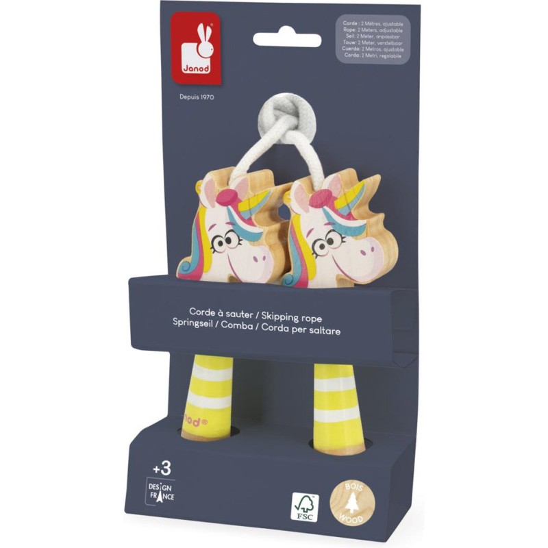 Jeu d’extérieur incontournable, cette corde à sauter en bois est synonyme de mouvement et de légèreté. Elle fera plaisir aux fans de licornes, comme à ceux qui adorent bouger et sauter partout ! À l’intérieur comme à l’extérieur, les enfants développent leur coordination pour sautiller avec joie, comme une licorne !