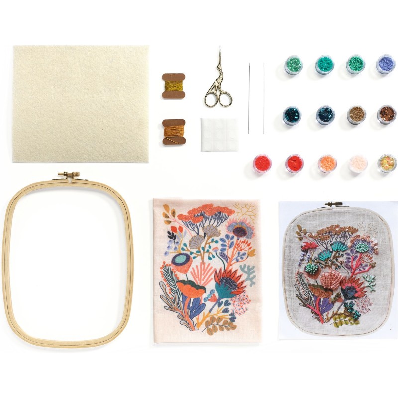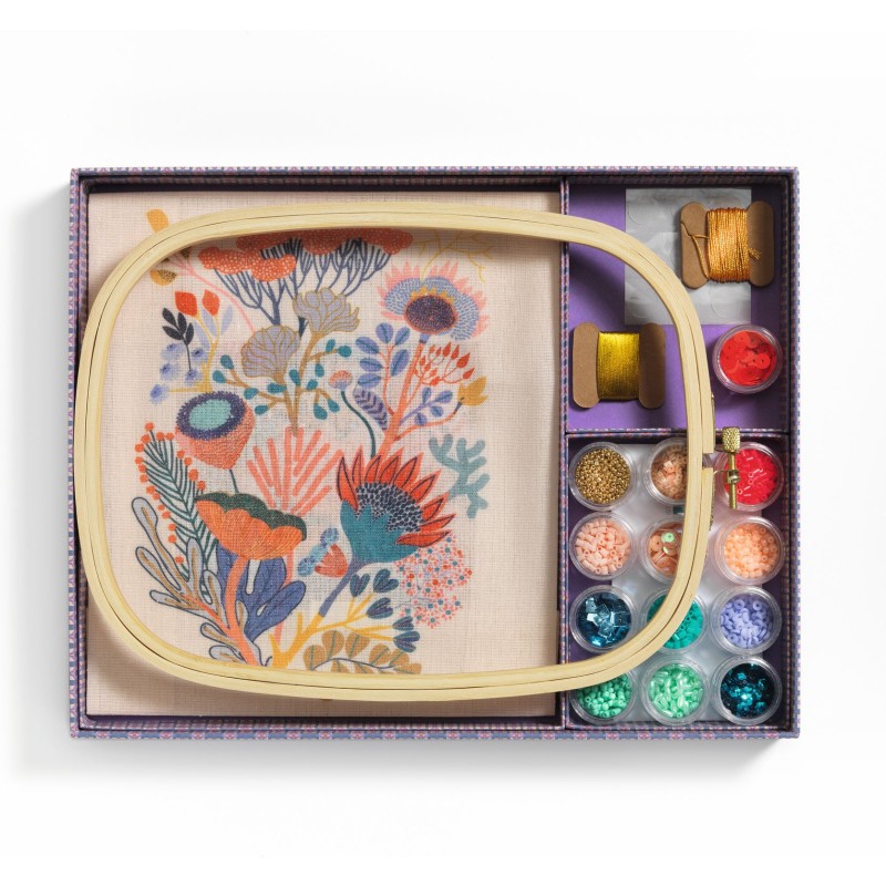 Contenu : 1 tambour de broderie en bois 1 toile imprimée 1 paire de ciseaux de broderie 13 boîtes de perles et sequins 1 tapis d'enfilage 23 aiguilles 1 passe-fil 2 bobines de fil doré 1 modèle à suivre Un dépliant et une carte avec QR code menant à une vidéo tuto pour découvrir l’activité, 1 tambour de broderie en bois 1 toile imprimée 1 paire de ciseaux de broderie 13 boîtes de perles et sequins 1 tapis d'enfilage 2 aiguilles 1 passe-fil 2 bobines de fil doré 1 modèle à suivre Un dépliant et une carte avec QR code menant à une vidéo tuto pour découvrir l’activité