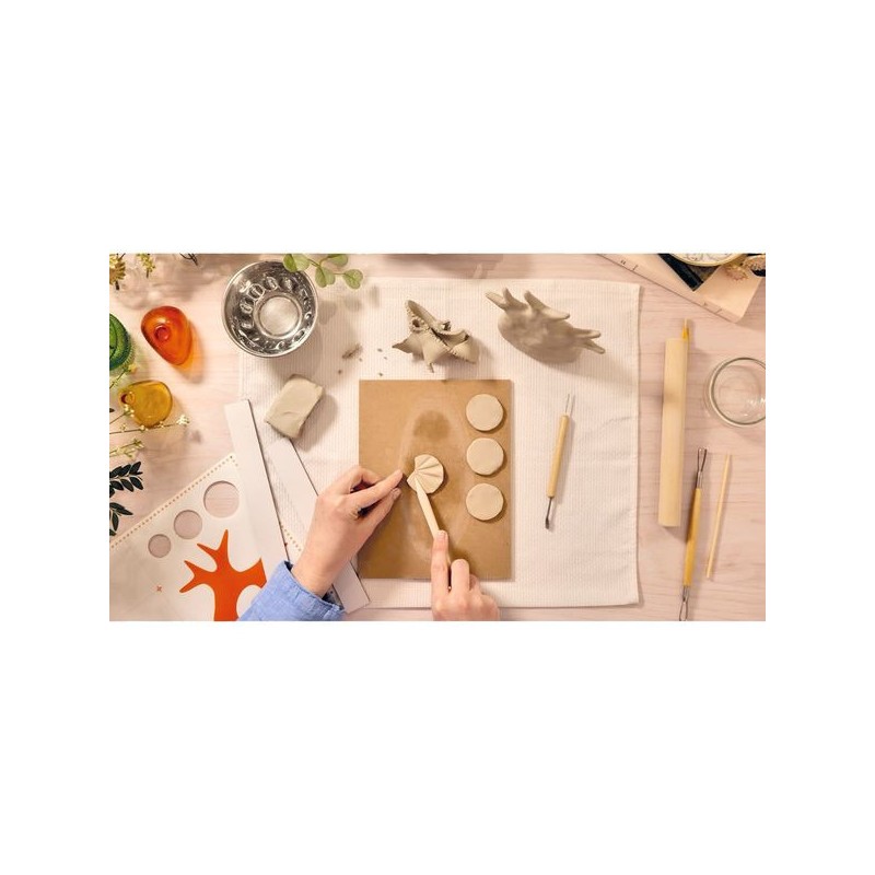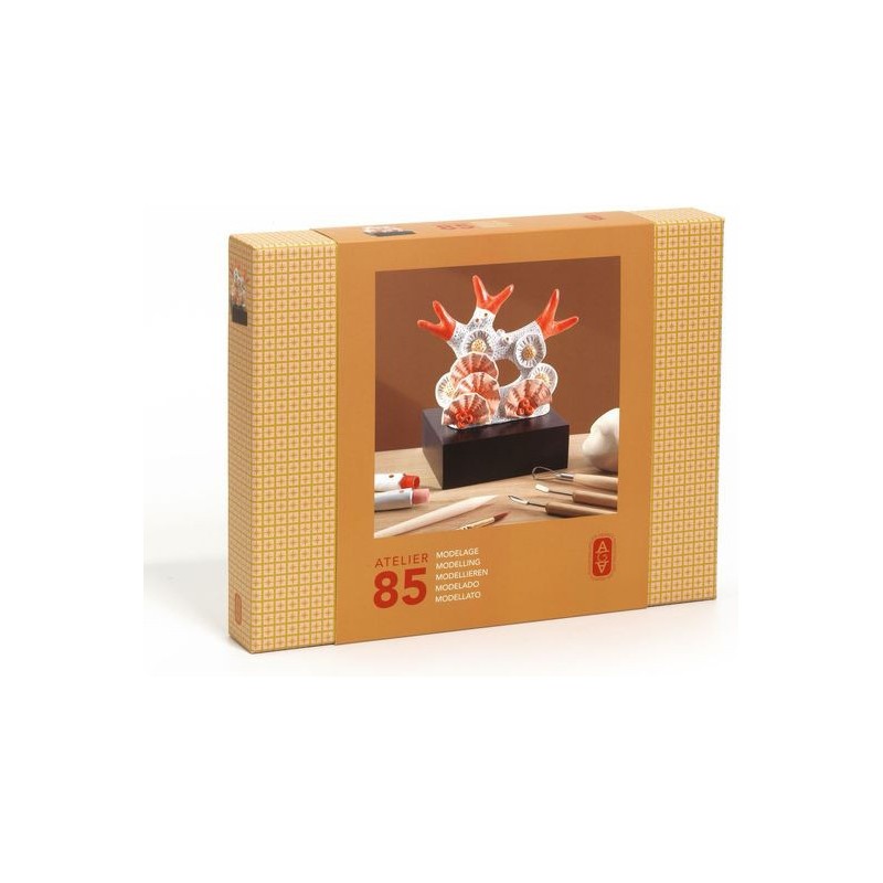 Initiez vous au modelage, un art de la matière et du geste. Atelier 85 propose une initiation au travail de l’argile. Le modelage consiste à sculpter l'argile avec ses mains et des outils de sculpteur professionnels, pour façonner volumes, textures et formes uniques. On travaille une véritable argile : elle sèche à l’air libre, sans cuisson, pour ensuite être peinte. Vous apprendrez à créer une pièce modelée, en explorant gestes, creux et reliefs, pour donner forme à votre corail. Et pour vous accompagner à chaque étape, un tuto vidéo permettant d'apprendre les bons gestes. À découvrir en toute liberté, chez soi, à son rythme, pour une expérience de détente inédite.