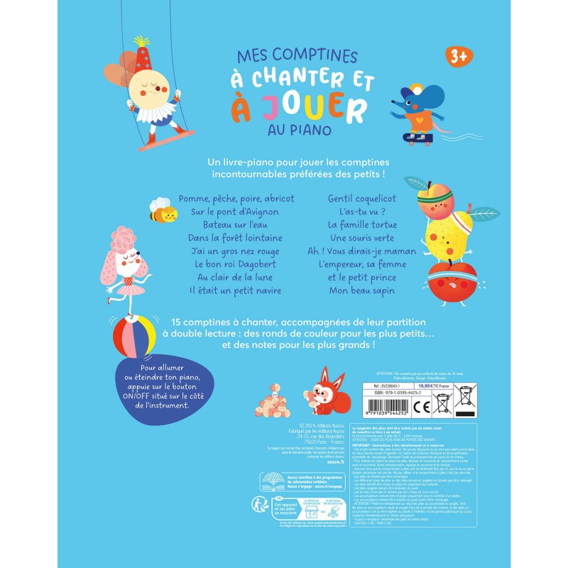 Munie d'un piano intégré, la collection propose des comptines adaptées aux tout-petits qui souhaitent découvrir le piano.