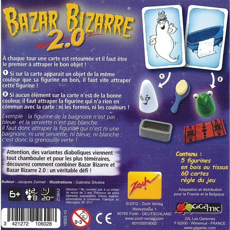 La règle de base est la même que celle de Bazar Bizarre : Cinq figurines d’une certaine couleur sont disposées devant vous. Puis, une carte Objet est retournée. Si un des objets y figure à l’identique, saisissez-vite la figurine correspondante ! Sinon, attrapez la seule qui n’a rien en commun avec la carte : ni forme, ni couleur.