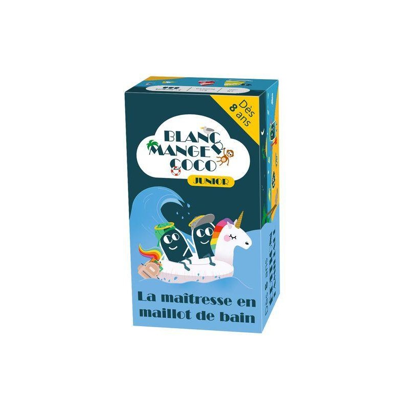 Arriverez-vous à faire rire les autres joueurs grâce à vos combinaisons de cartes ? Dans Blanc Manger Coco Junior, un joueur est désigné Question Master. Il lit une carte bleue avec une phrase à trou(s). Tous les autres joueurs choisissent une carte blanche qui vient compléter le texte à trou(s). Celui qui a posé la carte la plus drôle gagne la manche puis lit la carte bleue suivante, et ainsi de suite ! Le premier à arriver à 5 points est l’heureux vainqueur. Après le succès de Blanc Manger Coco, le jeu d’ambiance absolu entre adultes, découvrez sa version entièrement familiale ! Toutes les cartes de cette édition sont adaptées à l’humour sans limite des enfants dès 8 ans. La Maîtresse en Maillot de Bain contient des thèmes variés et amusants.