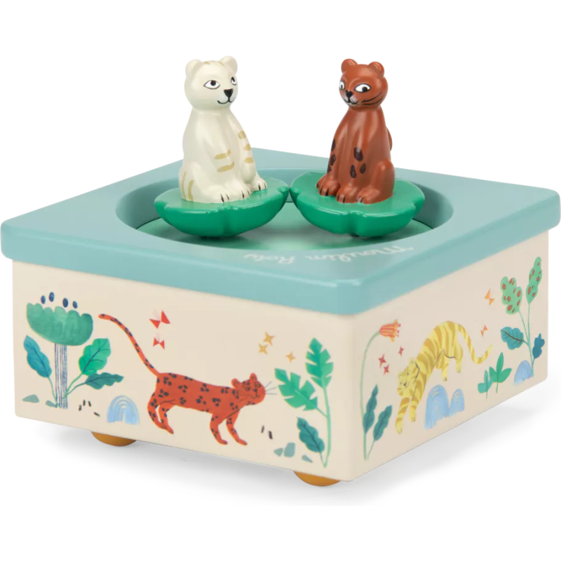 Baboo et Taïgo virevoltent au rythme de la berceuse pour endormir tendrement votre enfant. La boîte à musique a été joliment illustrée à l'aquarelle par Élodie Coudray.