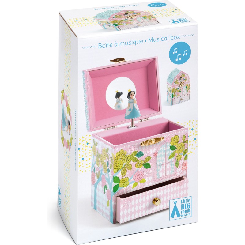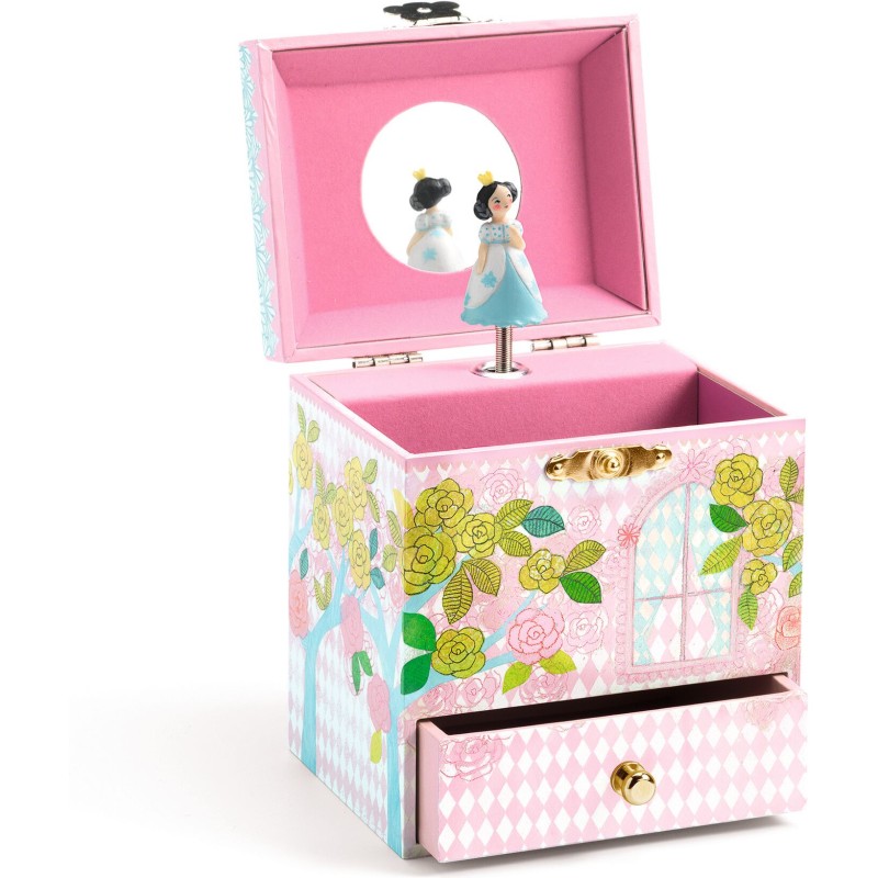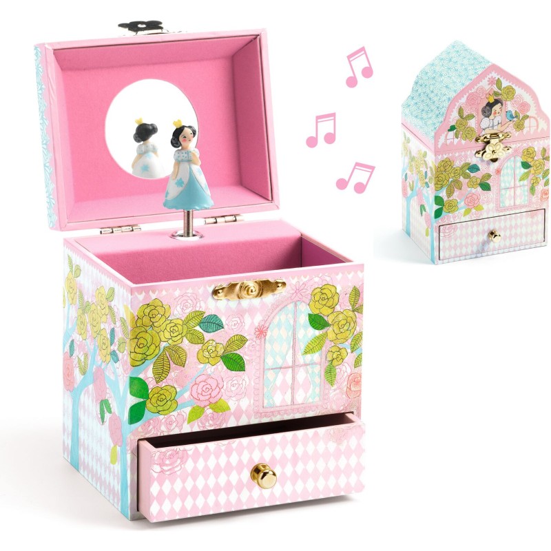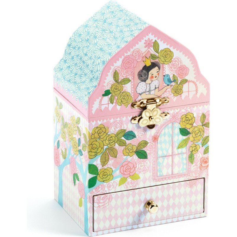 Palais enchanté est une boîte à musique en forme de château joliment illustrée pour ranger ses bijoux et secrets. Tournez la manivelle, ouvrez la boîte et surprise : une princesse finement sculptée tourne et se reflète sur un miroir silhouetté au son de la musique « La flûte enchantée » de Wolfgang Amadeus Mozart.