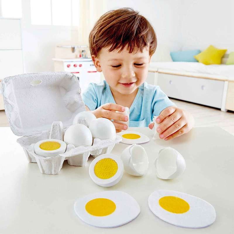 C'est l'heure du petit déjeuner ! Que vous préfériez les oeufs durs ou les oeufs sur le plat vous allez vous régaler ! Ce jeu boîte d'oeufs adapté pour les enfants à partir de 3 ans contient six oeufs : trois oeufs durs et trois oeufs sur le plat. Les coquilles s'enlèvent pour plus de réalisme. L'enfant pourra grâce à ce set rendre ses jeux de rôles sur l'univers de la cuisine et de la nourriture encore plus réalistes et décider de s'improviser super cuistot pour préparer le petit-déjeuner de toute la famille. .