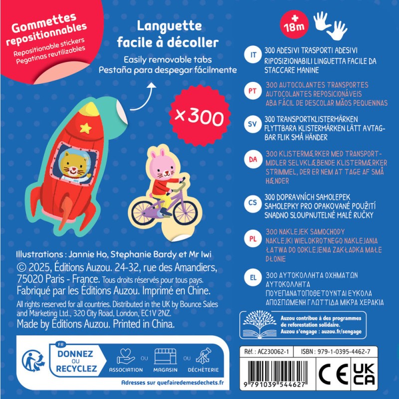 Découvre 300 gommettes sur le thème des transports et des véhicules dans une belle boîte en métal. Garde cette boîte pour ranger tes gommettes et tous tes trésors !
