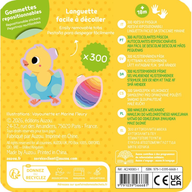 Découvre 300 gommettes sur le thème de Pâques dans une belle boîte en métal. Garde cette boîte pour ranger tes gommettes et tous tes trésors !