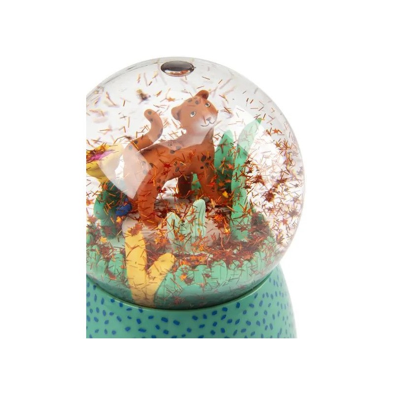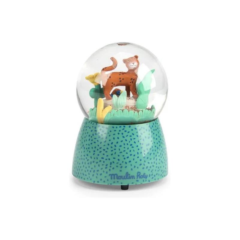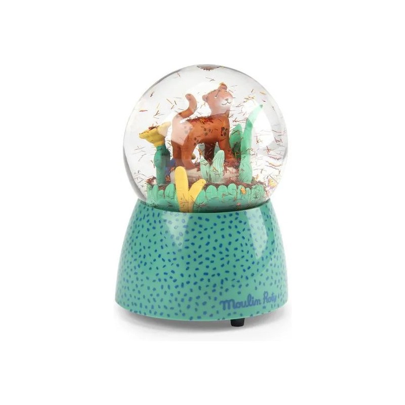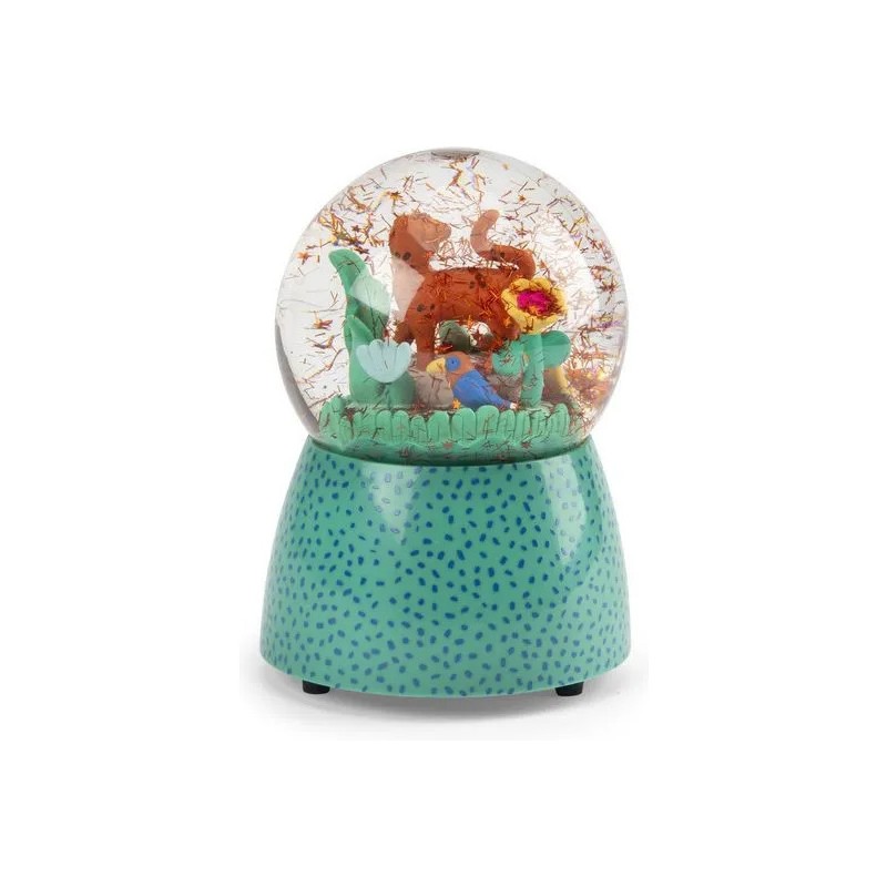 Boule à neige musicale représentant Taïgo et Litchi en pleine promenade à travers les feuillages. Oh une fleur, un papillon ! Plus qu'une pièce de décoration, une douce mélodie résonnera au moment du coucher pour accompagner bébé aux pays des rêves.