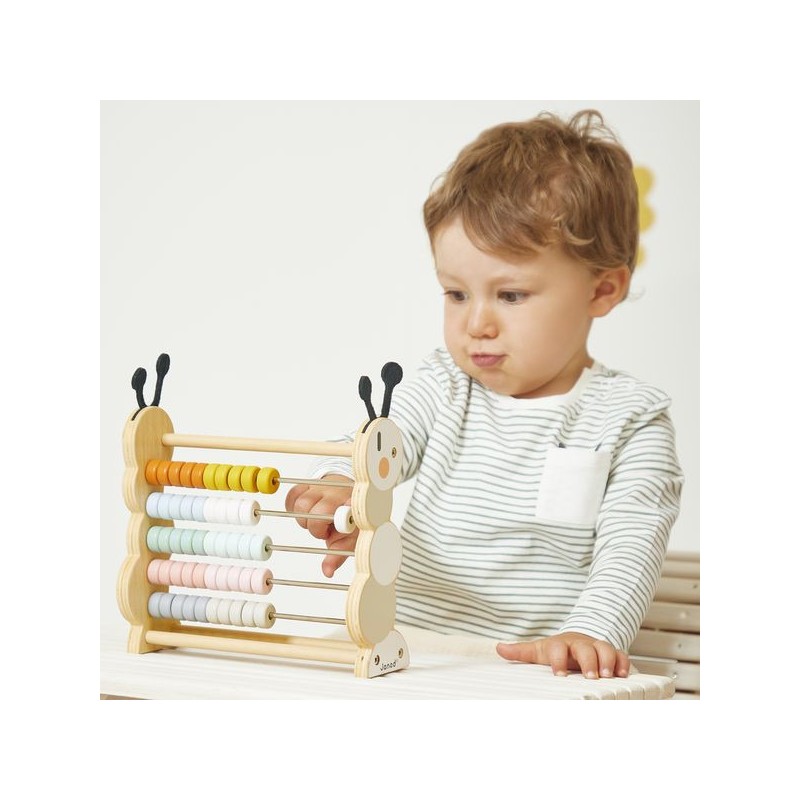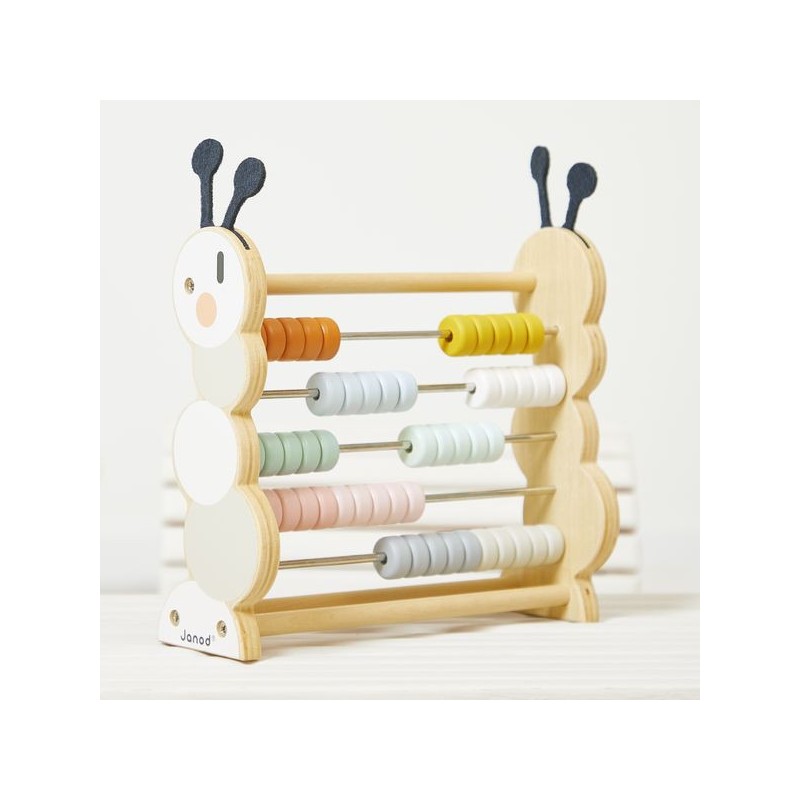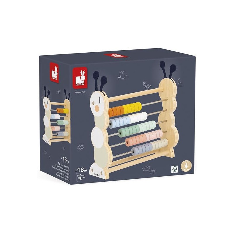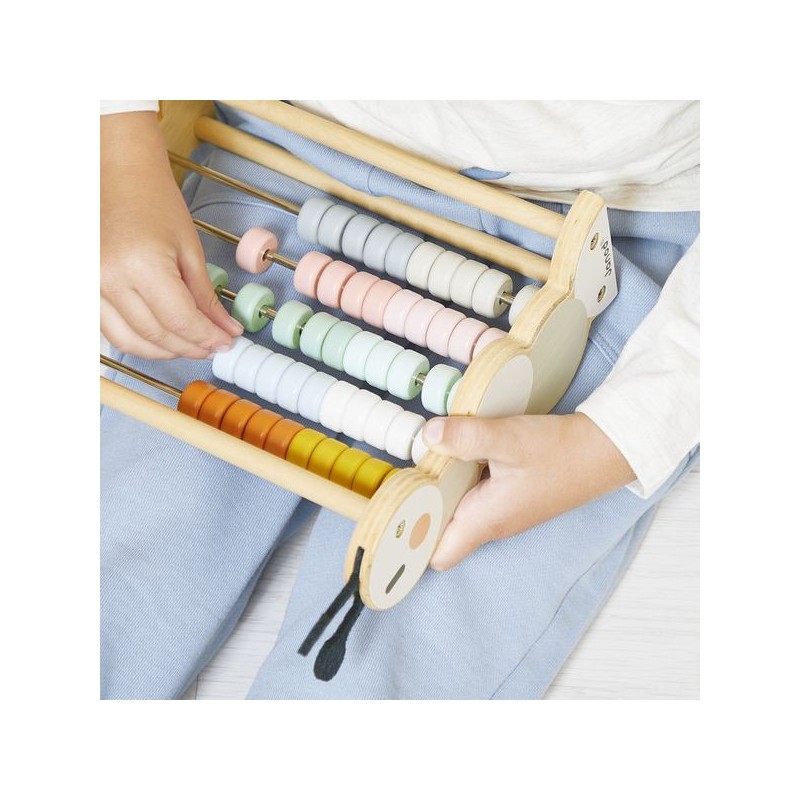 À la recherche d’un jouet en bois ludique et durable ? Ce boulier chenille saura vous séduire avec son style bucolique et sa fonction éducative ! Adapté aux tout-petits dès l’âge de 18 mois, ce boulier en bois s’adapte aux premières découvertes comme aux premiers apprentissages pour grandir avec votre enfant. D’abord, bébé manipule les pièces de son jouet d’éveil de gauche à droite et découvre les différentes nuances de couleurs. 10 coloris sont à découvrir, de l’orange au rose, en passant par le bleu et le vert. Une fois plus grand, il utilisera son boulier chenille pour apprendre à compter, mais aussi pour réaliser des opérations simples comme les additions ou les soustractions. C’est aussi un jeu éducatif idéal quand on apprend à différencier les dizaines des unités. Vous l’aurez compris : un boulier est un chouette moyen de stimuler la motricité fine des petits et de renforcer l’apprentissage des nombres des plus grands. Composé de 5 rangées de 10 perles colorées, ce boulier chenille est composé de bois issu de forêts gérées durablement, certifié Fsc™. Il trouvera sa place dans la chambre des petits pour longtemps et sera un véritable atout pour s’exercer à la maison ! Ce boulier chenille en bois est issu de notre collection Sweet Cocoon.