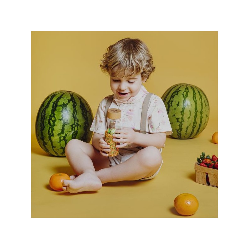 Les bouteilles sensorielles Petit Boum sont incassables et parfaitement scellées grâce à un système de double bouchon.