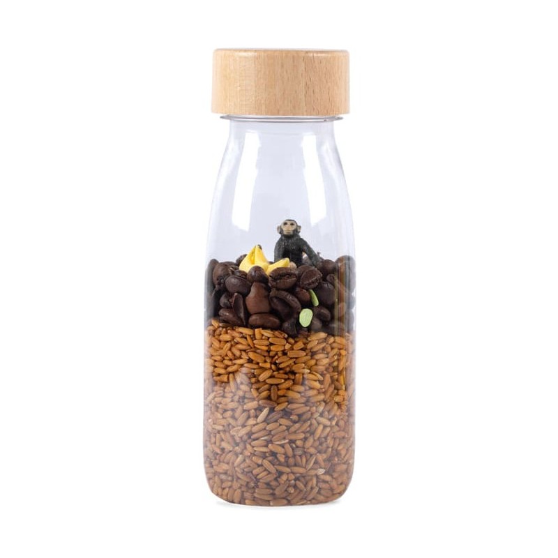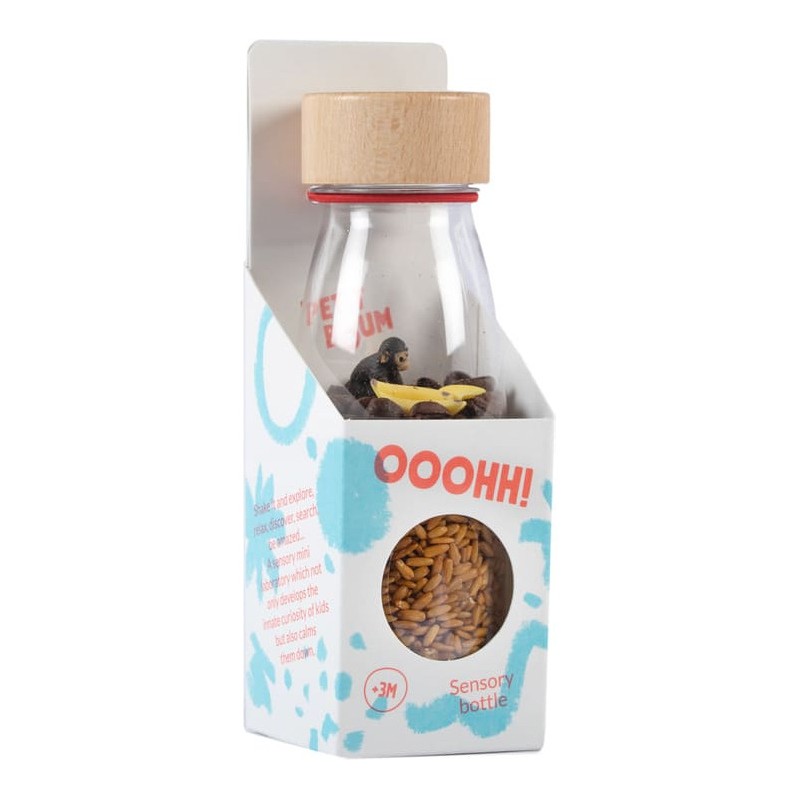Découvrez la bouteille sensorielle Sound Singe de la marque Petit Boum. Un jouet d’éveil coloré, inspiré de la pédagogie Montessori, qui stimule les sens des bébés dès 3 mois. Une bouteille à secouer qui va stimuler le sens auditif de votre enfant, qui va aussi explorer chaque détail et se détendre en observant le contenu du flacon. Votre enfant va pouvoir observer, agiter et découvrir le doux son des éléments. Une invitation à explorer, à éveiller les sens et la curiosité des plus petits. Fabriquée à la main en Espagne, à partir de plastique recyclable, d'un bouchon en bois d'érable et d'éléments naturels, la bouteille sensorielle Petit Boum est incassable. Elle est pensée et conçue pour les enfants dès 3 mois. L'intérieur est étanche et chaque bouteille dispose d'un double bouchon entièrement scellé pour que les petits puissent la manipuler en toute sécurité. Les flacons sensoriels Petit Boum sont exemptés de Bpa, de métal et de phtalates. Dimensions de la bouteille sensorielle : 14 x 4 cm.