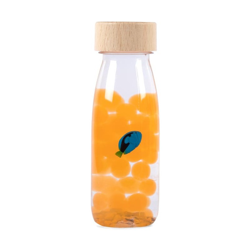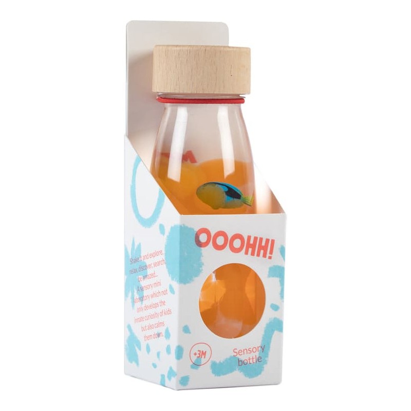 Découvrez la bouteille sensorielle Sound Poisson Chirurgien bleu de la marque Petit Boum. Un jouet d’éveil coloré, inspiré de la pédagogie Montessori, qui stimule les sens des bébés dès 3 mois. Une bouteille à secouer qui va stimuler le sens auditif de votre enfant, qui va aussi explorer chaque détail et se détendre en observant le contenu du flacon. Une invitation à explorer, à éveiller les sens et la curiosité des plus petits. Fabriquée à la main en Espagne, à partir de plastique recyclable, d'un bouchon en bois d'érable et d'éléments naturels, la bouteille sensorielle Petit Boum est incassable. Elle est pensée et conçue pour les enfants dès 3 mois. L'intérieur est étanche et chaque bouteille dispose d'un double bouchon entièrement scellé pour que les petits puissent la manipuler en toute sécurité. Les flacons sensoriels Petit Boum sont exemptés de Bpa, de métal et de phtalates. Dimensions de la bouteille sensorielle : 14 x 4 cm.