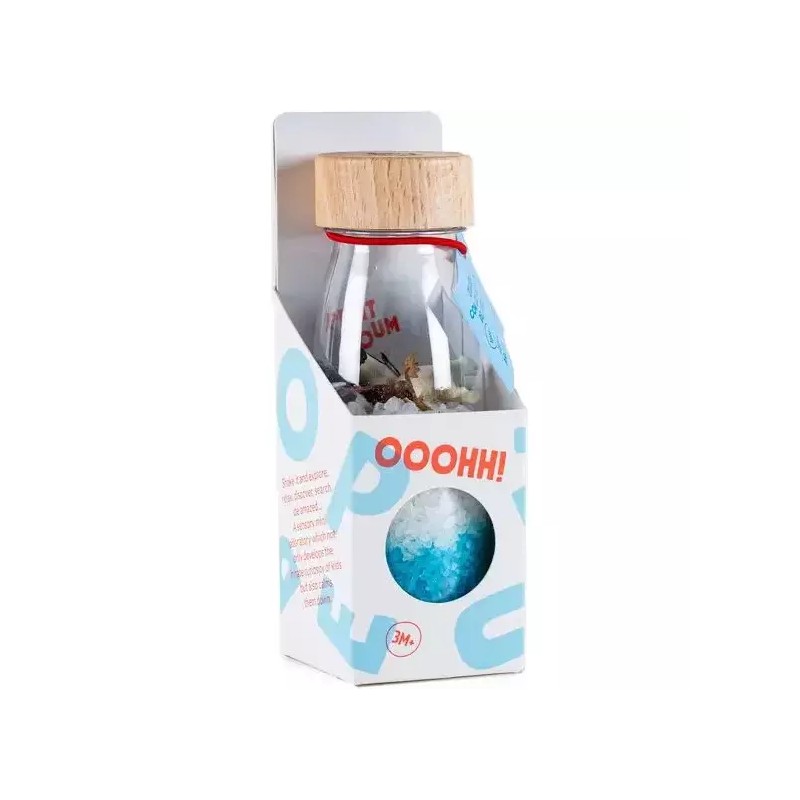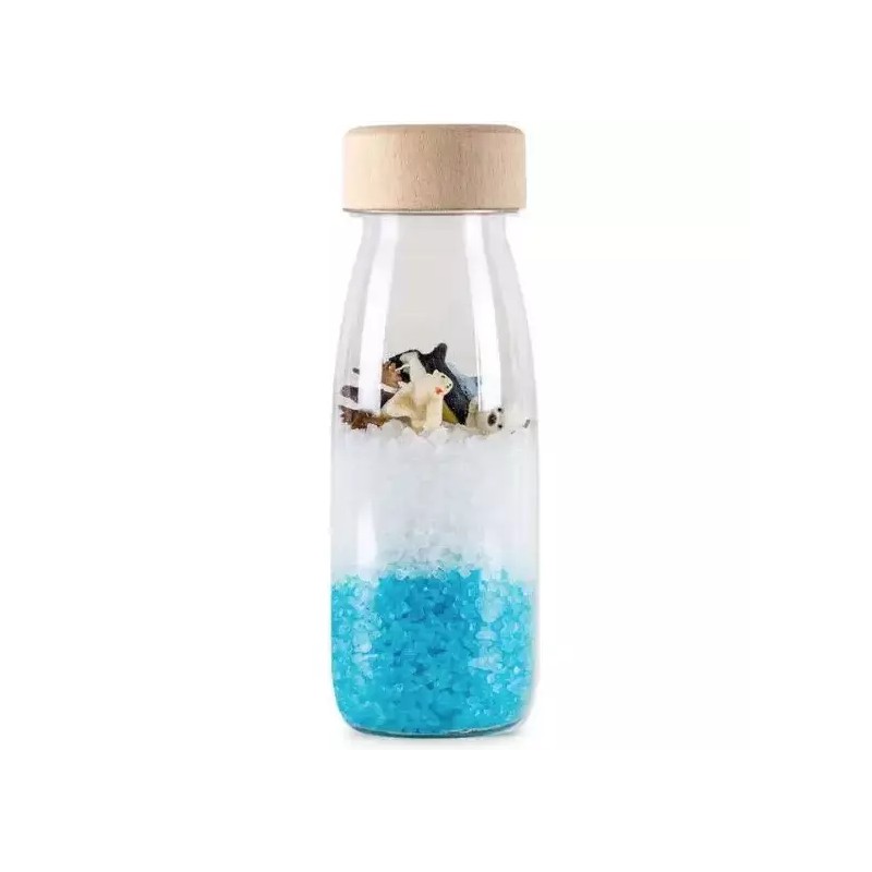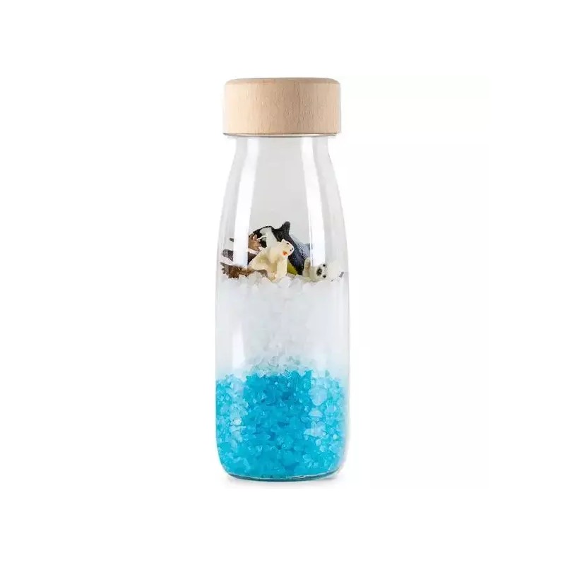 Découvrez la bouteille sensorielle Spy Arctique de la marque Petit Boum. Un jouet d’éveil coloré, inspiré de la pédagogie Montessori, qui stimule les sens des bébés dès 3 mois. Une bouteille à secouer qui va stimuler le sens auditif de votre enfant, qui va aussi explorer chaque détail et se détendre en observant le contenu du flacon. Votre enfant va pouvoir rechercher et découvrir ce qui se trouve à l'intérieur de la bouteille, identifier et compter les animaux, les secouer pour les cacher... Une invitation à explorer, à éveiller les sens et la curiosité des plus petits. Un microcosme à portée de main, accompagné d'une petite brochure avec des idées d'activités pour les plus de 18 mois. Fabriquée à la main en Espagne, à partir de plastique recyclable, d'un bouchon en bois d'érable et d'éléments naturels, la bouteille sensorielle Petit Boum est incassable. Elle est pensée et conçue pour les enfants dès 3 mois. L'intérieur est étanche et chaque bouteille dispose d'un double bouchon entièrement scellé pour que les petits puissent la manipuler en toute sécurité. Les flacons sensoriels Petit Boum sont exemptés de Bpa, de métal et de phtalates. Dimensions de la bouteille sensorielle : 14 x 4 cm.