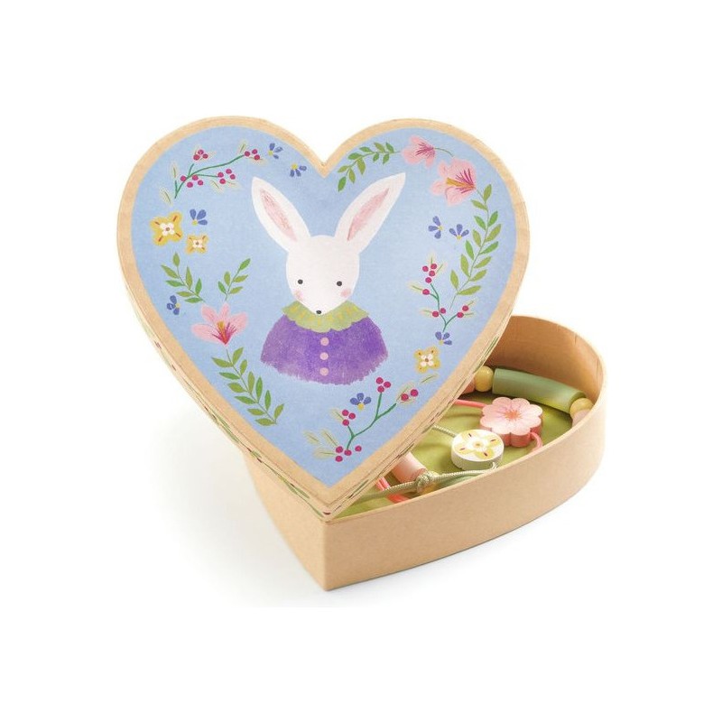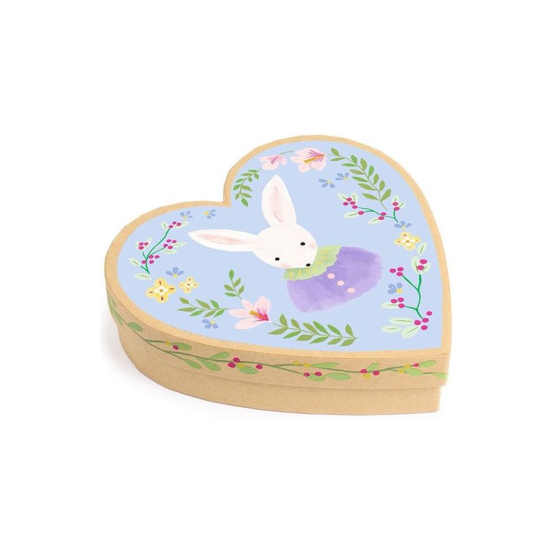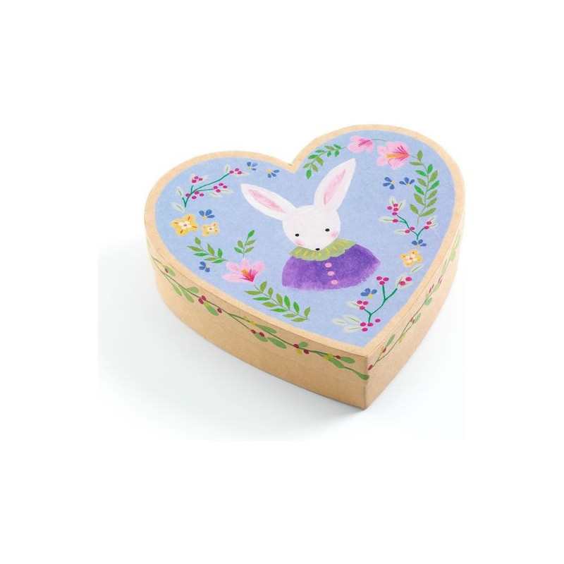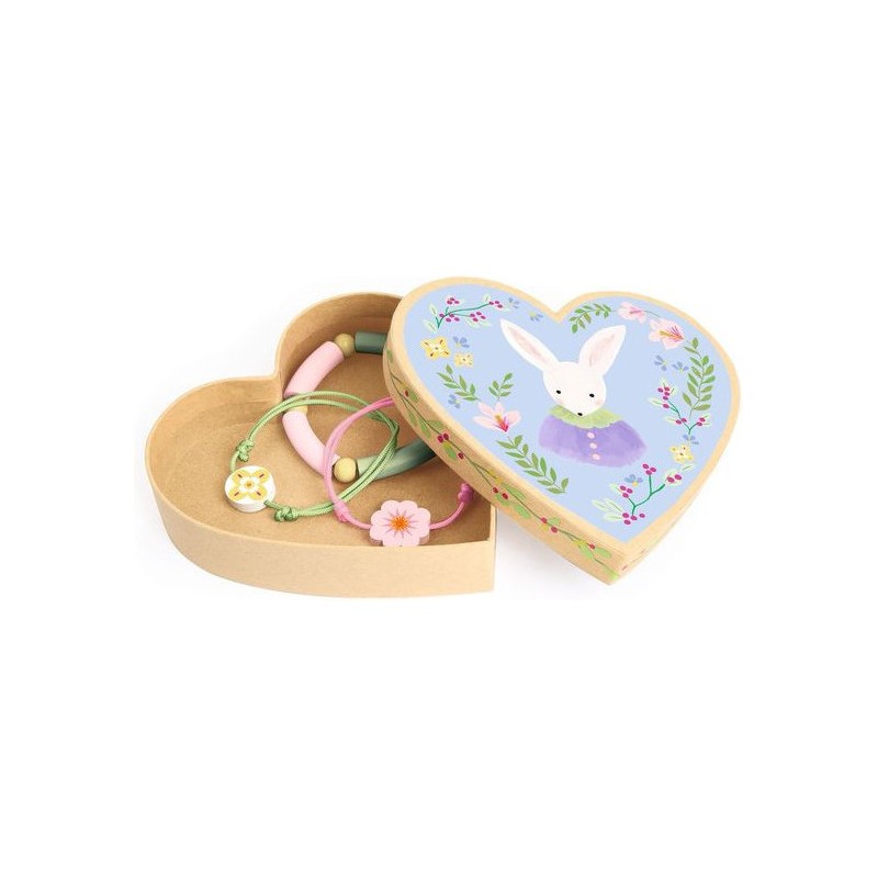 Cette jolie boîte en forme de cœur décorée d'un petit lapin tout mignon cache 3 adorables bracelets.