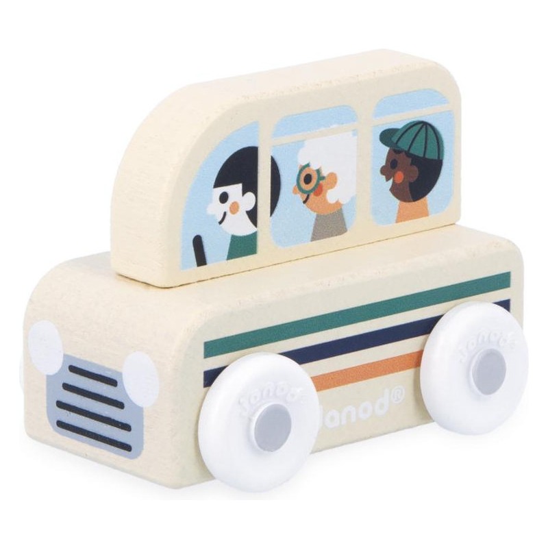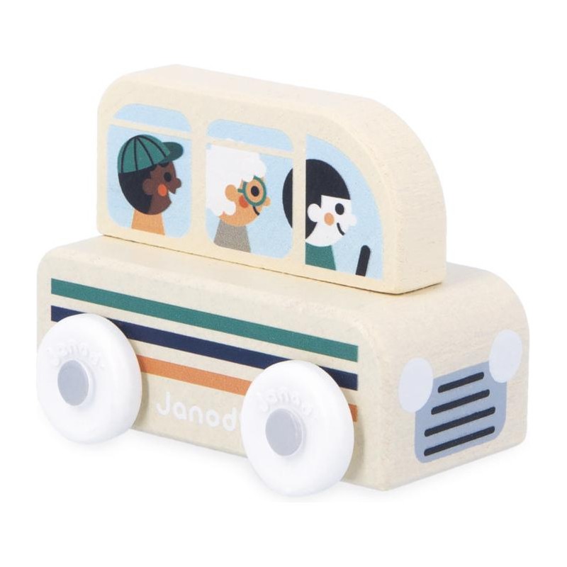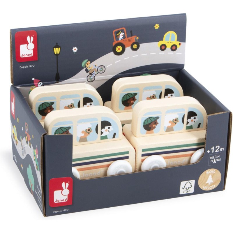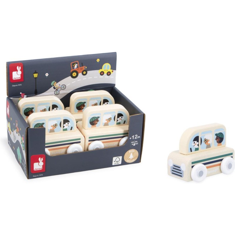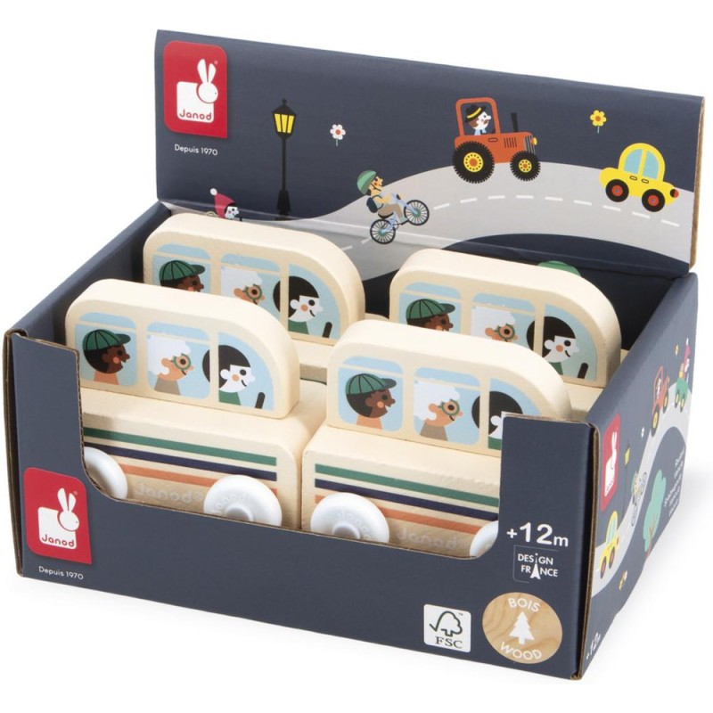 « Le bus est prêt à partir, accrochez vos ceintures ! » Cette petite voiture en bois convient aux enfants, dès l’âge de 12 mois. Avec ce joli bus à motifs rayés, les locaux comme les touristes se rendent à la gare ou encore au camping ! Sa forme a été pensée spécialement pour une prise en main optimale pour les petits, qui peuvent facilement le tenir par le haut pour le faire rouler. Les véhicules sont parfaits pour inventer de nombreuses histoires et développer son imagination ! Les bébés s’amusent d’abord à les faire rouler, puis les plus grands se racontent toutes sortes d’aventures et développent leur vocabulaire et leur créativité. Cette petite voiture Janod est issue de notre collection Cross Roads : une série de tapis de jeu avec circuits, encore plus ludiques quand ils sont complétés par nos sets de cubes et nos petits véhicules en bois. Le bus convient particulièrement au tapis de jeu Vallée Blanche, mais s’associe tout aussi bien avec d’autres tapis de la gamme. Il est composé de bois issu de forêts gérées durablement, certifié Fsc™. « Waouh ! C'est encore plus beau que sur les photos. »