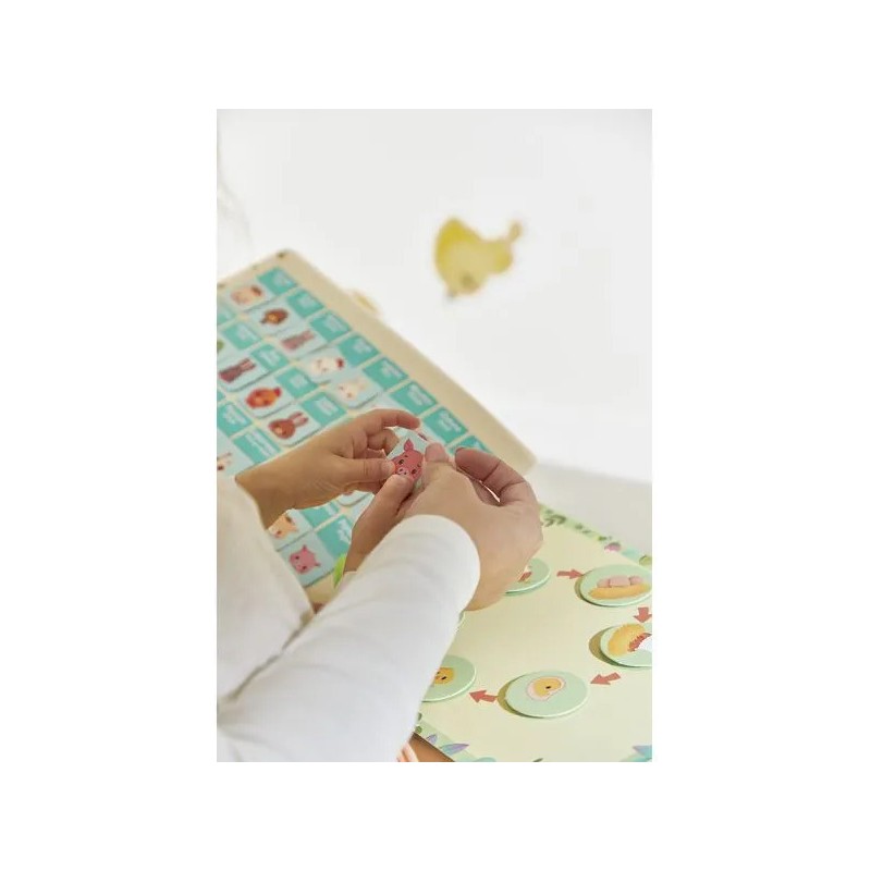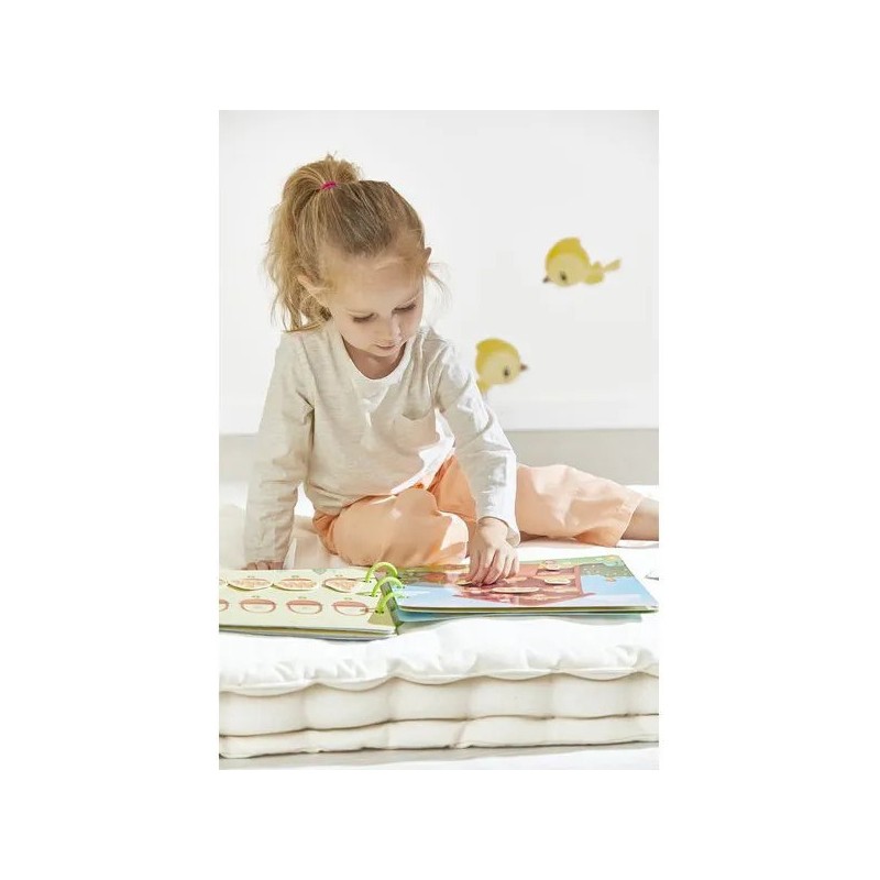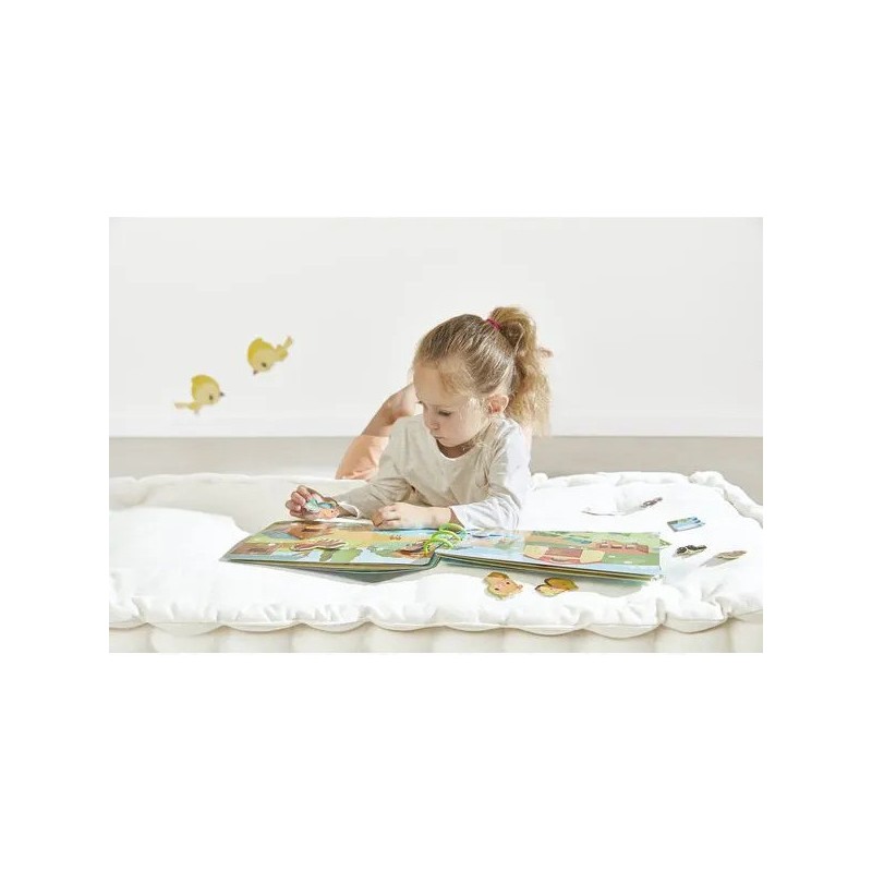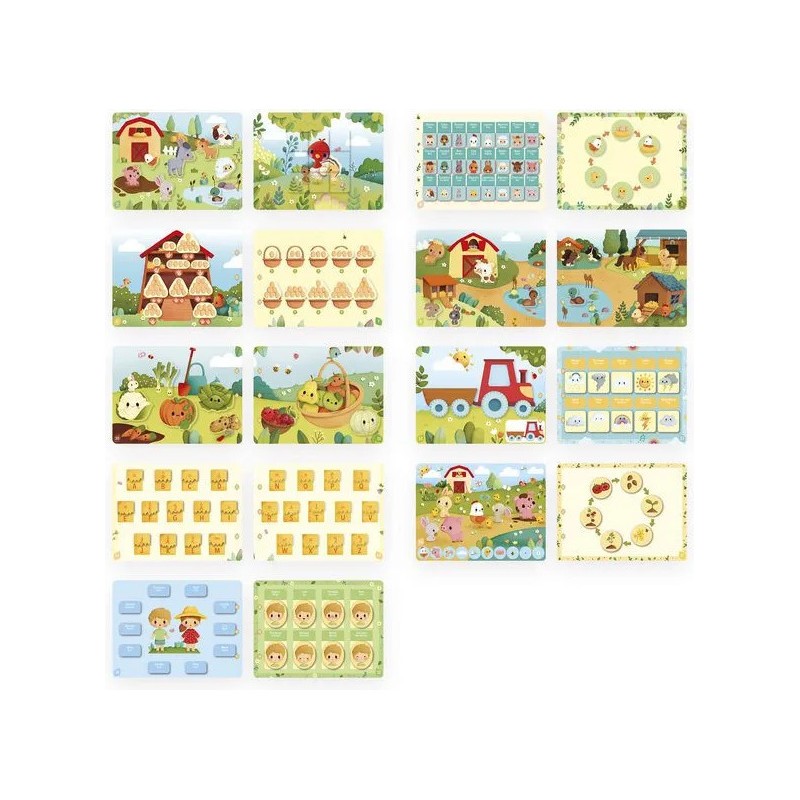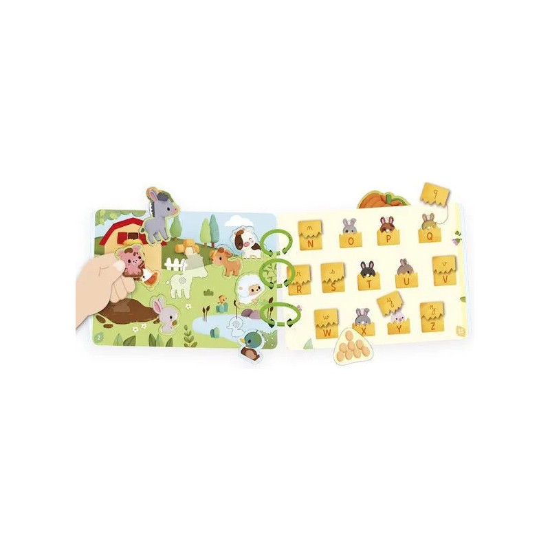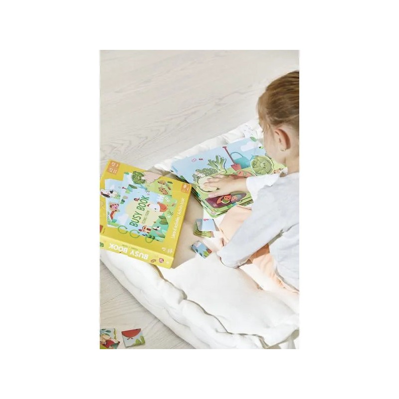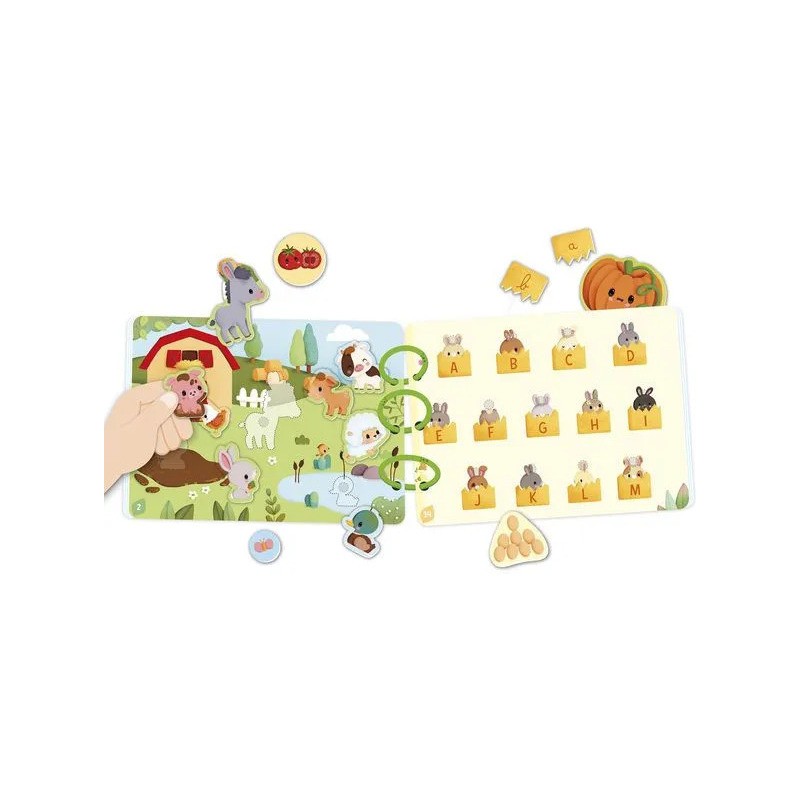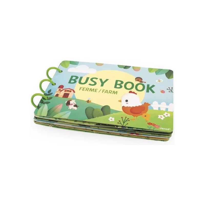 Bienvenue à la ferme ! Ce busy-book composé de 20 pages d'activités fait découvrir aux tout-petits dès 3 ans la vie à la ferme. Et il s'en passe des choses là-bas ! Les animaux gambadent dans les prés, les poussins sortent de leur coquille, les légumes grandissent sous le soleil… Les enfants ont mille choses à découvrir ! Ils y retrouvent les animaux stars de la ferme : la poule, la vache, le cochon, le lapin... Et même le dindon ! Au fil des pages, les enfants se familiarisent avec leurs habitats et observent les scènes de la vie quotidienne. Chaque activité invite à manipuler, observer et nommer pour apprendre en s’amusant. Au total, 158 pièces sont à placer dans le livre ! Les illustrations douces et vivantes ont été pensées pour éveiller la curiosité, enrichir le vocabulaire et développer la motricité fine. Et ce n’est pas tout : les plus grands pourront aussi s’initier aux chiffres et à l’alphabet, en majuscules et minuscules. Un vrai coup de pouce pour développer le langage et les premières notions scolaires. Pratique et évolutif, ce livre d'activités est relié par 3 anneaux en plastique détachables, permettant aux parents de sélectionner les pages les plus adaptées à l’âge et au rythme de l’enfant. Une belle façon de faire grandir le livre avec lui ! Ce jeu d’éveil est parfait pour des moments de jeu autonomes. Grâce à son format livre, il s'emporte facilement partout ! Dimensions : 27 x 21 cm. Ce busy-book est composé de carton Fsc™. Place à la découverte !