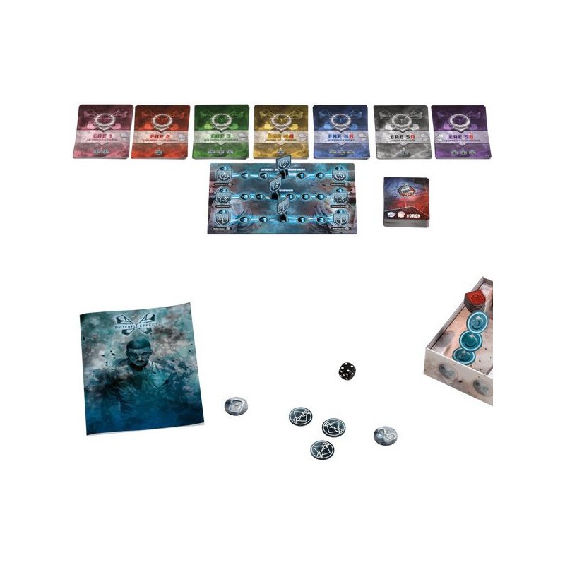 Contenu : # 1 Livret de règles, , 1 livret de Scénario, 49 cartes Exploration, 35 cartes Fragment, 1 plateau Jauges, 3 curseurs de Jauge, 1 dé, 16 Jetons, 2 planches de stickers