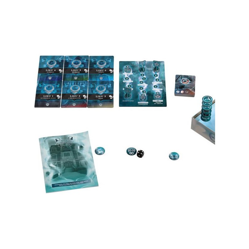 Contenu : # 1 Livret de règles, , 1 livret de Scénario, 37 cartes Exploration, 24 cartes Fragment, 1 plateau Jauges, 3 curseurs de Jauge, 10 jetons, 1 dé, 1 planche de stickers
