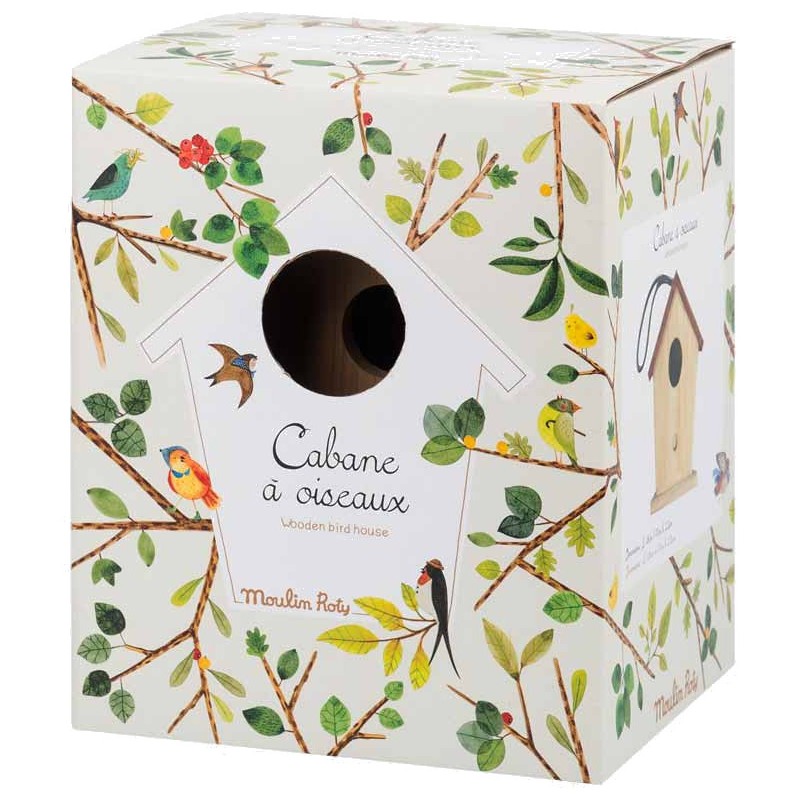 Présentée dans une jolie boîte illustrée au style planches naturaliste, petite cabane en bois massif à placer en hauteur pour accueillir les oiseaux. Ils peuvent alors y trouver refuge contre les intempéries et se tenir à l'écart de leurs prédateurs.