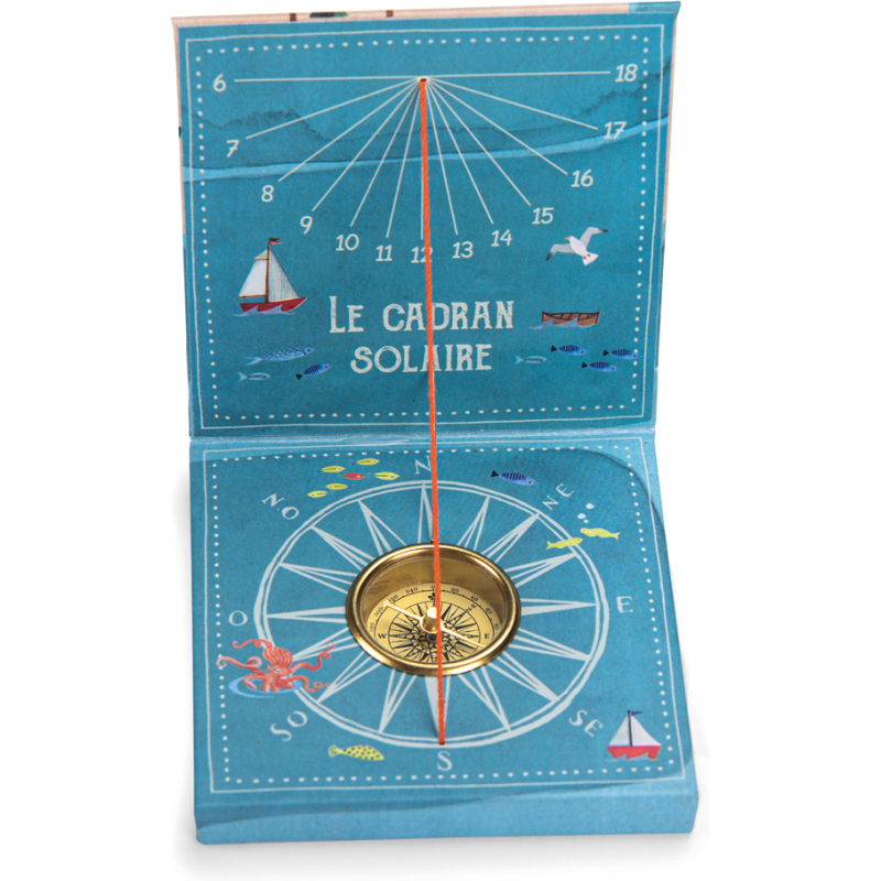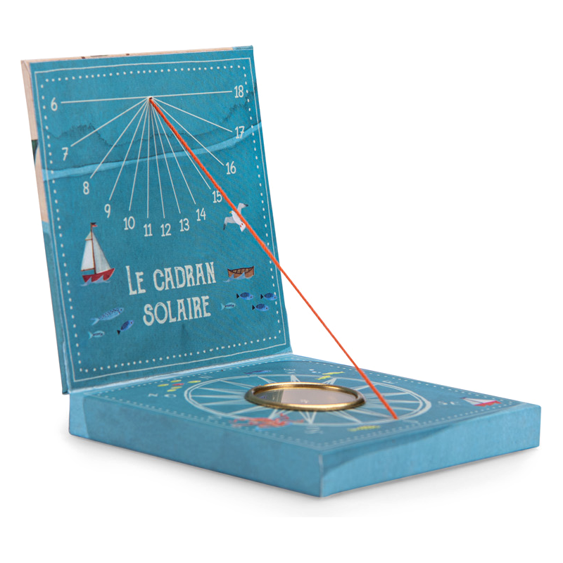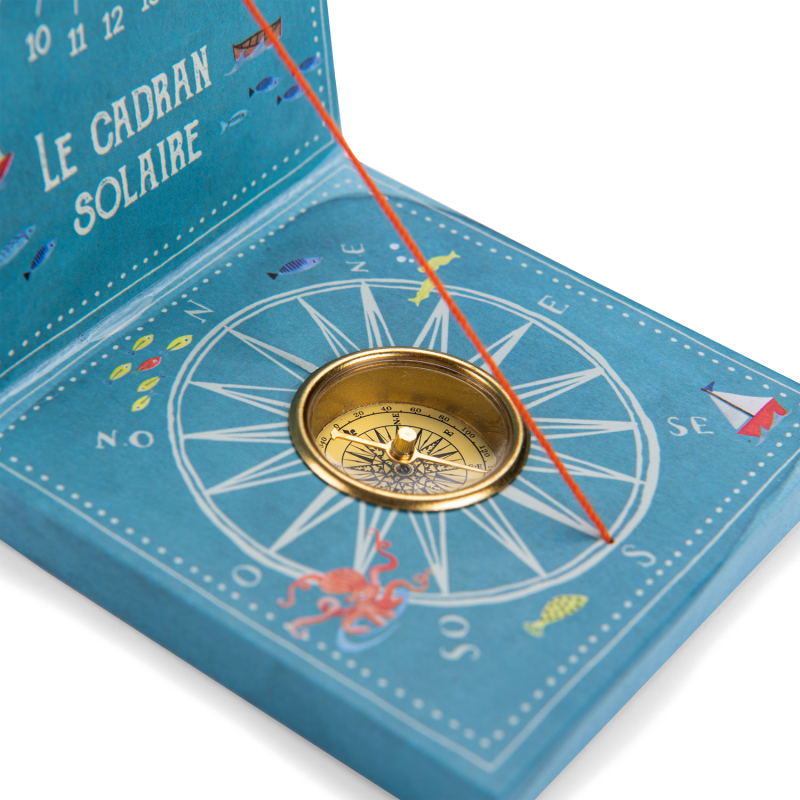 Cadran solaire pour sensibiliser les petits aventuriers au temps et à l'orientation. Il suffit de se mettre au soleil avec l'aiguille positionnée vers le nord, pour que l'ombre du fil indique l'heure solaire.