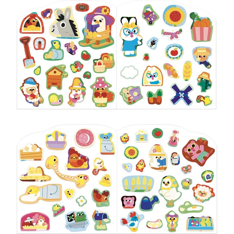 De la grange au potager, en passant par la récolte, chaque scène invite à découvrir la vie à la ferme ! Les stickers sont conçus pour les petites mains : formes simples et sans débord, pour une manipulation facile. L’autre avantage de ces autocollants ? Ils sont repositionnables, pour prolonger le plaisir !