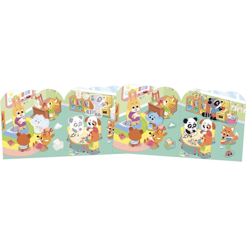 Du réveil à l'école, en passant par les jeux et le retour à la maison, chaque scène raconte un moment de vie. Une façon amusante d’apprendre à votre enfant les grandes étapes de la journée ! Les stickers ont été pensés pour les petites mains : formes simples et sans débord, pour une manipulation facile.
