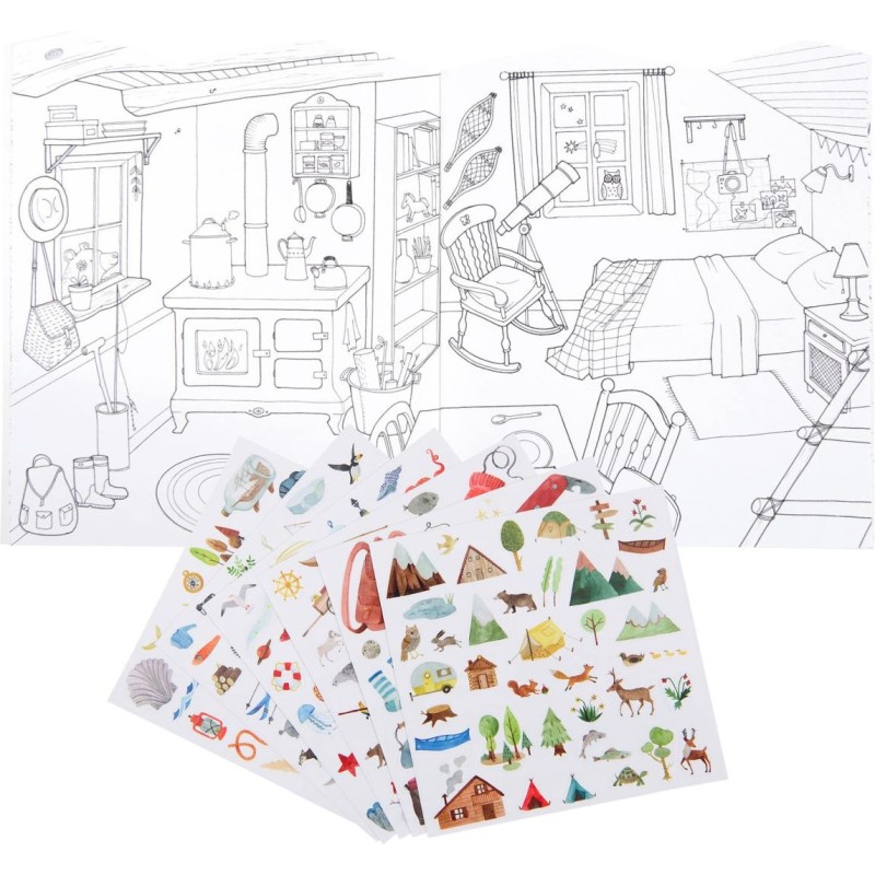 Cahier de coloriage avec 195 stickers sur le thème de l'exploration. Partir à la découverte des grands espaces et leurs habitations, voyager tout autour du monde… en coloriant !