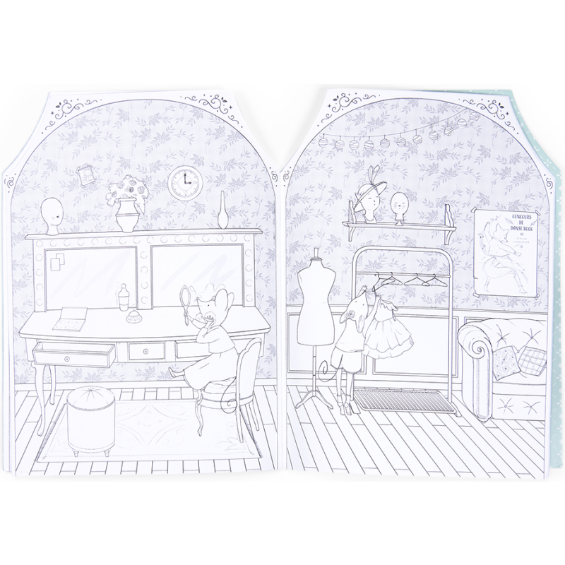 Suis les petites souris et leur camarades, de la maison jusqu'à l'Opéra dans la préparation du grand ballet ! Cahier aux illustrations détaillées et raffinées à colorier avec 170 stickers pour décorer les 9 lieux visités tout au long de la journée !