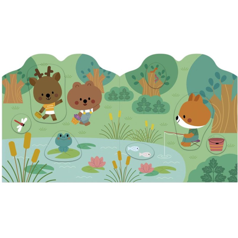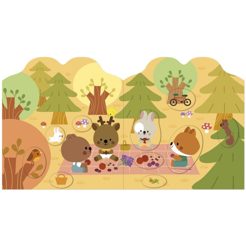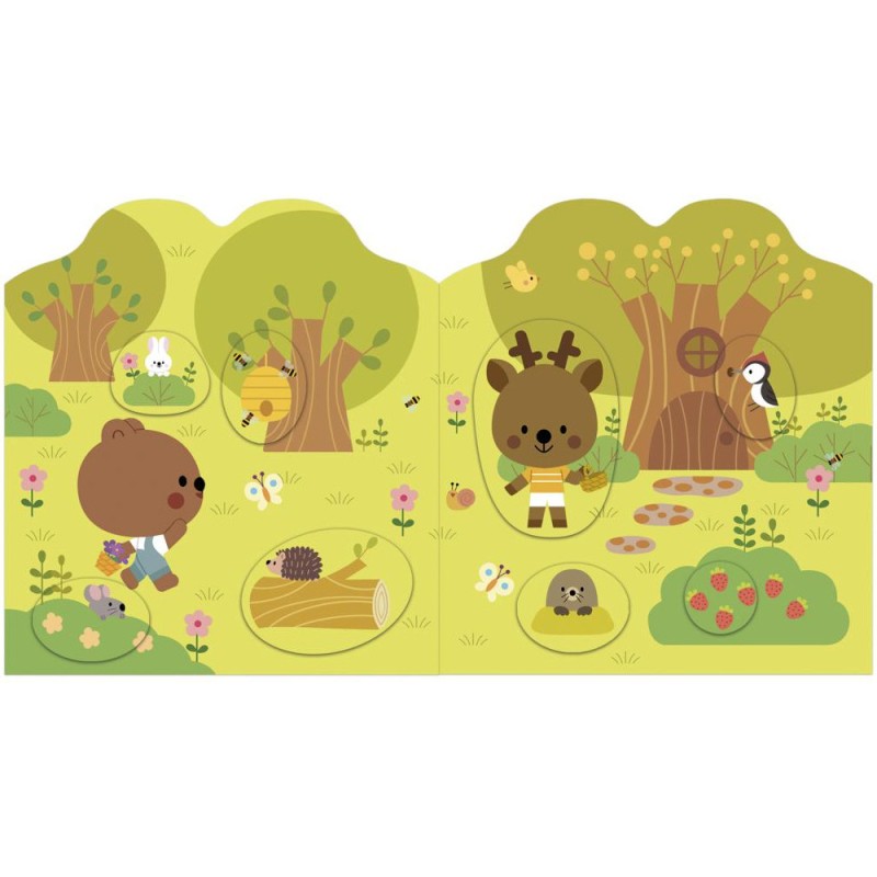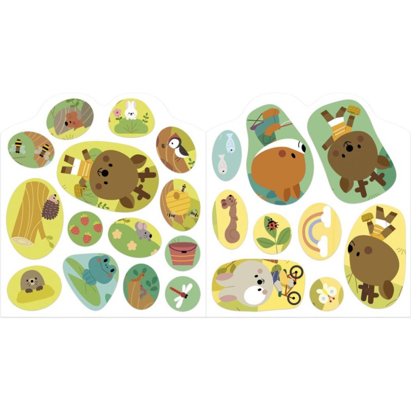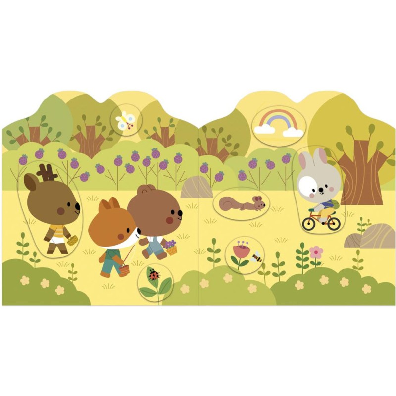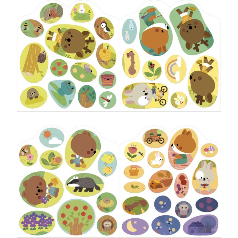Des stickers pour découvrir la forêt et ses mystères ! Ce cahier d’autocollants et de décors sur le thème de la forêt convient aux bébés et aux enfants dès 18 mois. Pratique à emporter partout, il permet aux petits de développer leur vocabulaire tout en stimulant leur motricité fine. Avec autant de stickers, on ne peut qu’être bien occupé … Et pendant longtemps ! Pour satisfaire les amateurs d’autocollants, ouvrez ce joli cahier en forme de petit ours brun et explorez les sous-bois : le cahier se compose de 12 pages de décors illustrés, pour couvrir des paysages qui changent en fonction des saisons à l’aide des 8 pages d’autocollants agrafées dans le cahier ! La taille des stickers a été spécialement pensée pour s’adapter aux mains des plus petits : ils ont tous une forme simple, sans débord, pour faciliter la prise en main. L’autre atout de ces autocollants pour bébé ? Ils sont repositionnables, pour prolonger le plaisir ! Malin, les emplacements des stickers sont en couleur descendue, pour aider l’enfant à les coller au bon endroit. Ce cahier de stickers est un indispensable pour occuper les longs trajets ou pour apprendre à patienter dans le calme. En manipulant les autocollants, bébé développe sa motricité fine et même sa créativité ! Les jolies couleurs, la grande variété de personnages et d’éléments de la nature, ainsi que les designs super mignons, attiseront sa curiosité ; pour le divertir, de la mare aux sentiers de randonnée !
