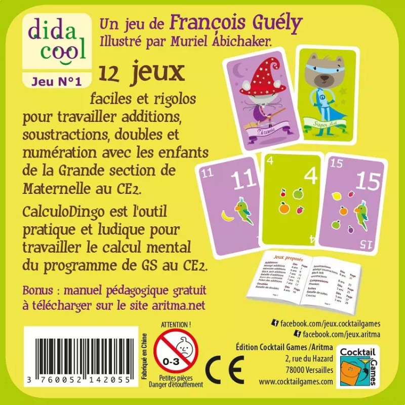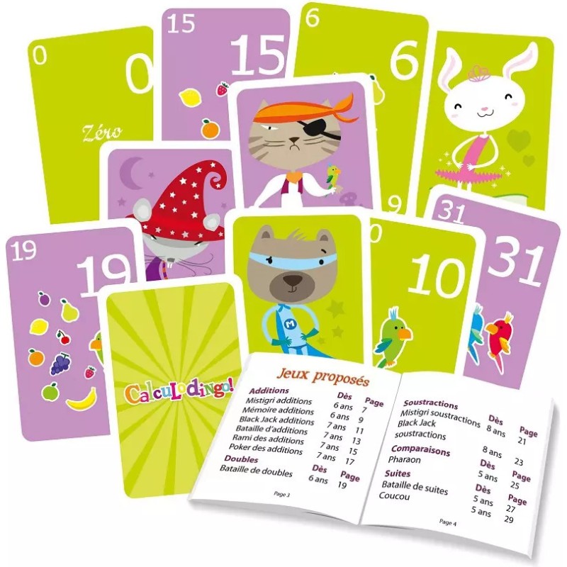 Adapté à tous les niveaux du primaire, CalculoDingo évolue avec votre enfant. Les règles sont simples, le principe est toujours ludique et les 4 personnages du jeu (mistigri, sacré plus, zizanie et calculine) sont vraiment craquants.