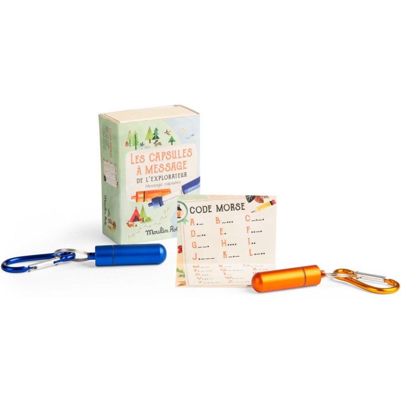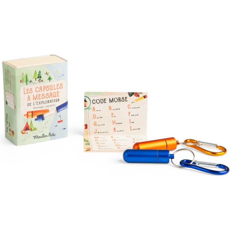 La mission ? Envoyer un message secret sans se faire repérer grâce aux capsules en métal ! La boîte contient le code morse et deux capsules à messages hermétiques. A emmener partout avec le petit mousqueton