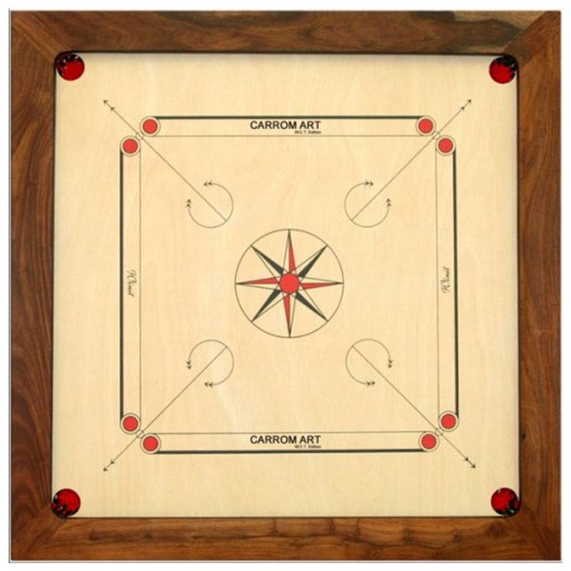 Le Carrom est un jeu d'adresse simple à apprendre, et très difficile à maîtriser ! Envoyez vos pions dans les trous placés aux quatre coins du plateau à l'aide de votre palet de tir. Comme au billard, tant que vous parvenez à envoyer un pion dans le trou, vous rejouez !