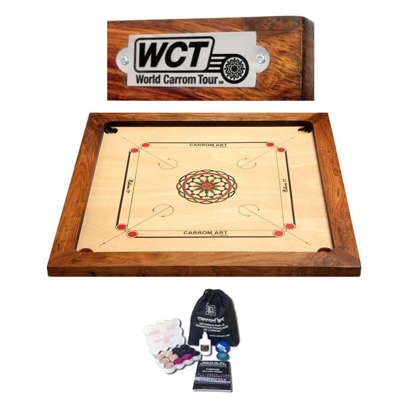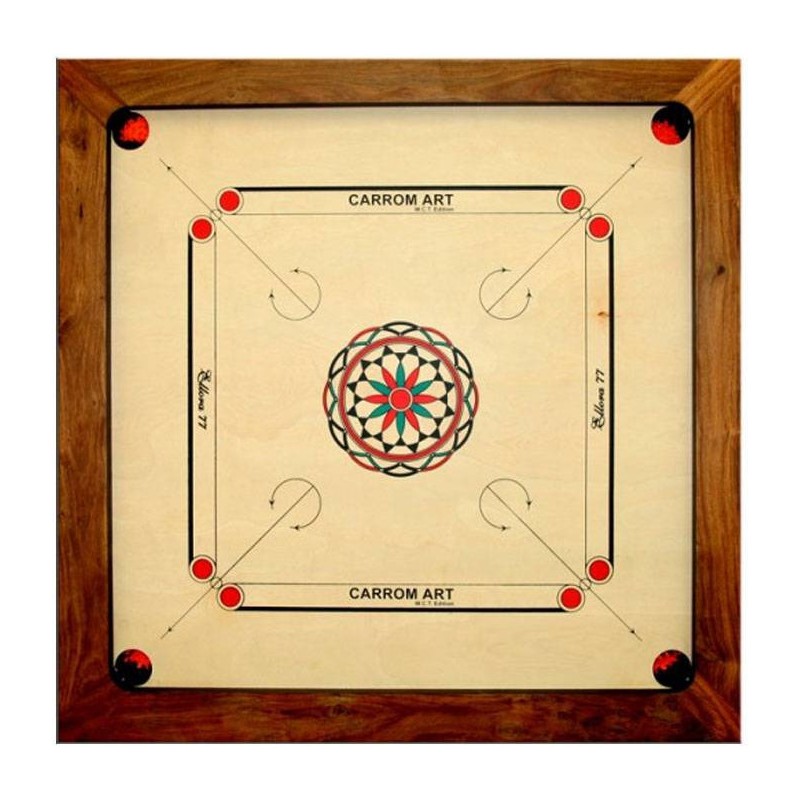 Le Carrom est un jeu d'adresse simple à apprendre, et très difficile à maîtriser ! Envoyez vos pions dans les trous placés aux quatre coins du plateau à l'aide de votre palet de tir. Comme au billard, tant que vous parvenez à envoyer un pion dans le trou, vous rejouez !