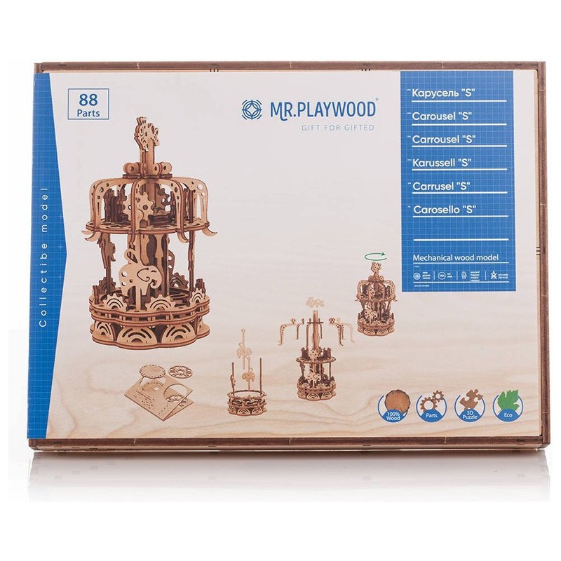 Dans sa version petite taille, assemblez puis faites tourner ce magnifique carrousel, et ses animaux fantastiques !