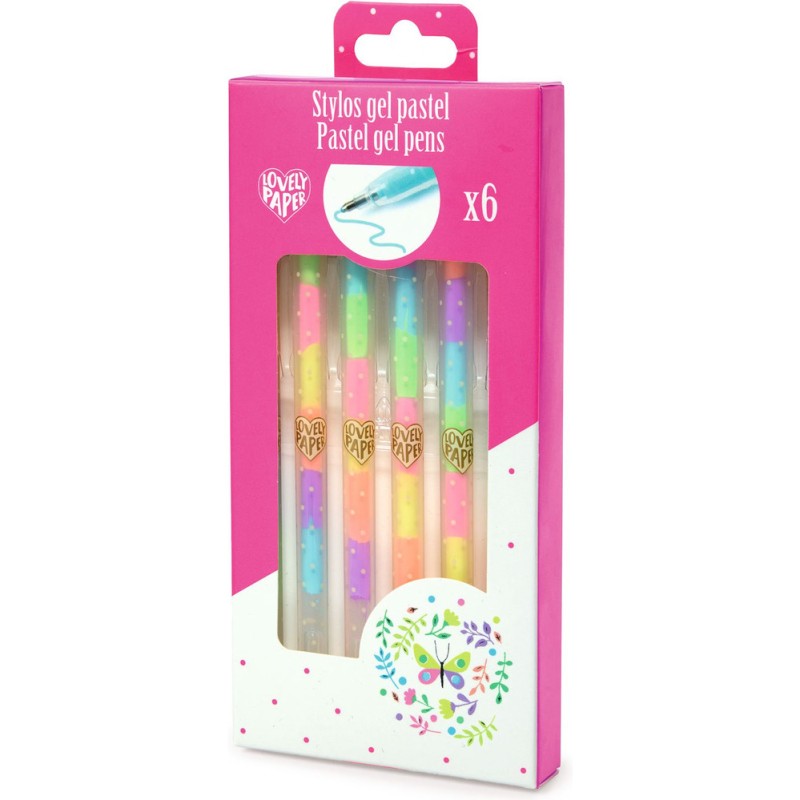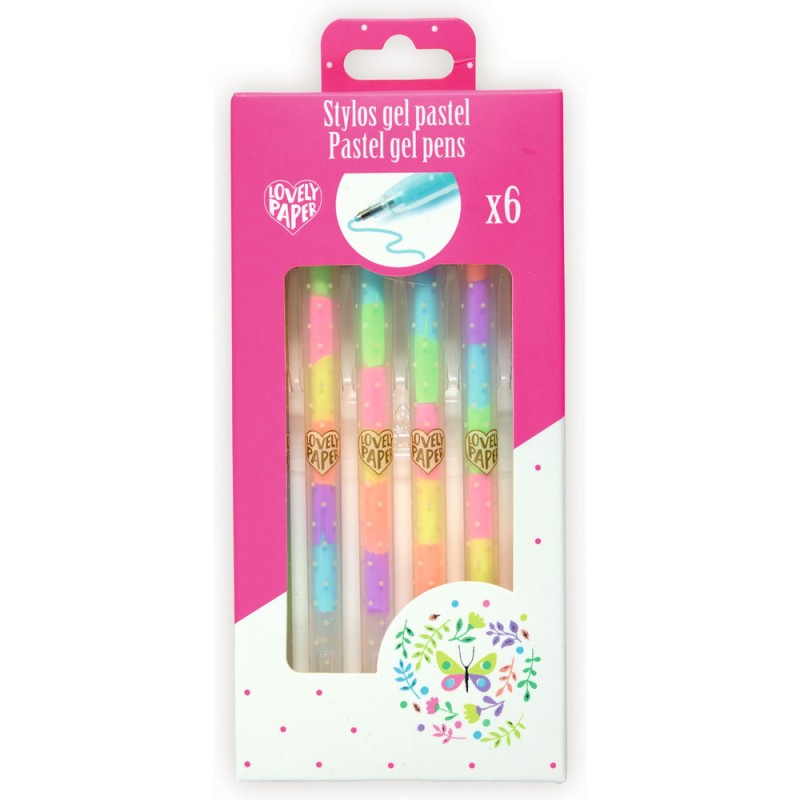 Contenu : 6 stylos gel avec 6 couleurs par stylo (jaune, orange, violet, vert, bleu et rose).