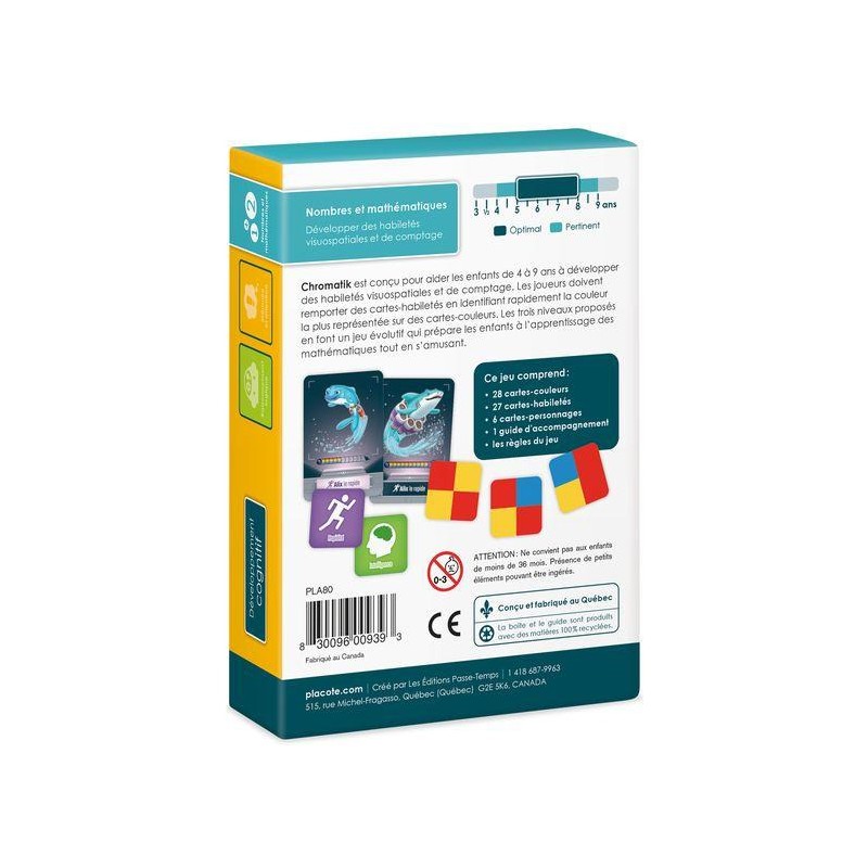 Chromatik est conçu pour favoriser le développement d’habiletés visuospatiales et de comptage. Les joueurs doivent remporter des cartes-habiletés en identifiant rapidement la couleur la plus représentée sur des cartes-couleurs.